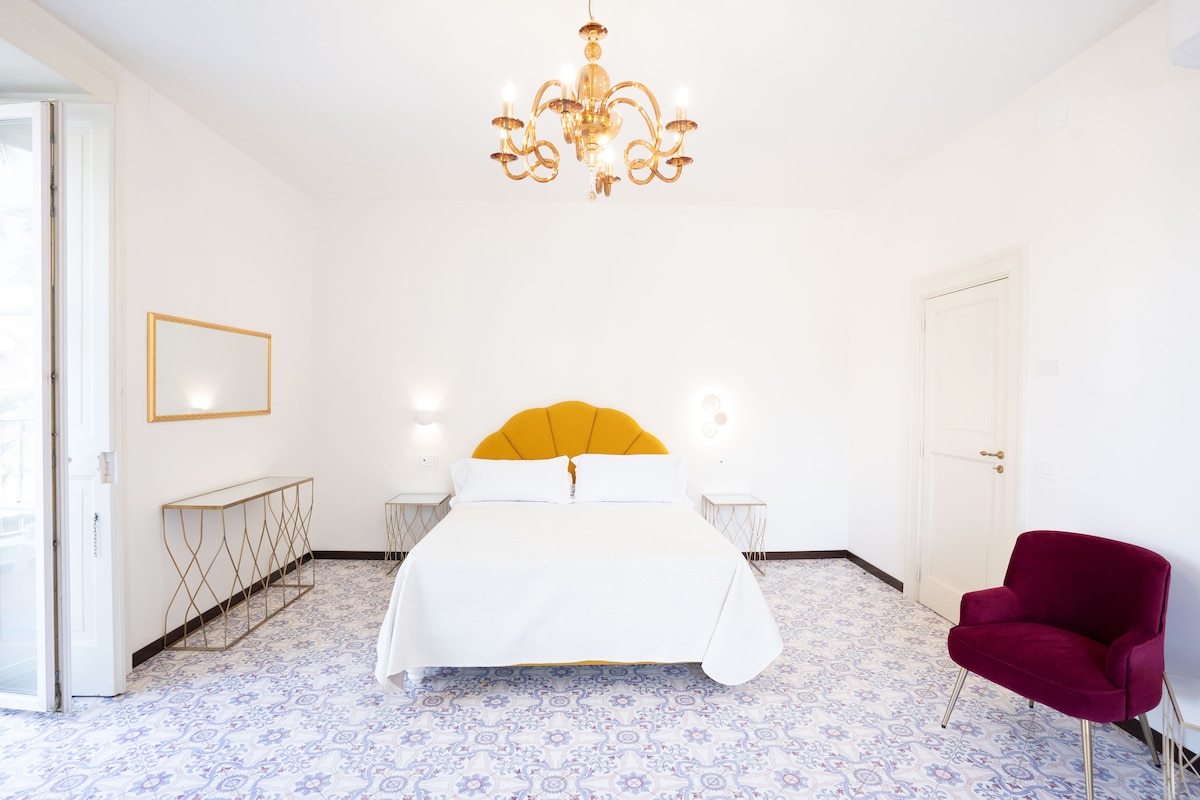 Ludovico Family Suite, með tveimur samliggjandi svefnherbergjum og tveimur baðherbergjum, er fágað afdrep með glæsileika og innblæstri. Vietri gólf, mjúkir litir og náttúruleg smáatriði eins og stingandi perur og kirsuberjablóm skapa fágað andrúmsloft. Rúmgóðar verandir flæða yfir svítuna með birtu og hrífandi útsýni yfir Vesúvíusarfjall og fornu furuna.