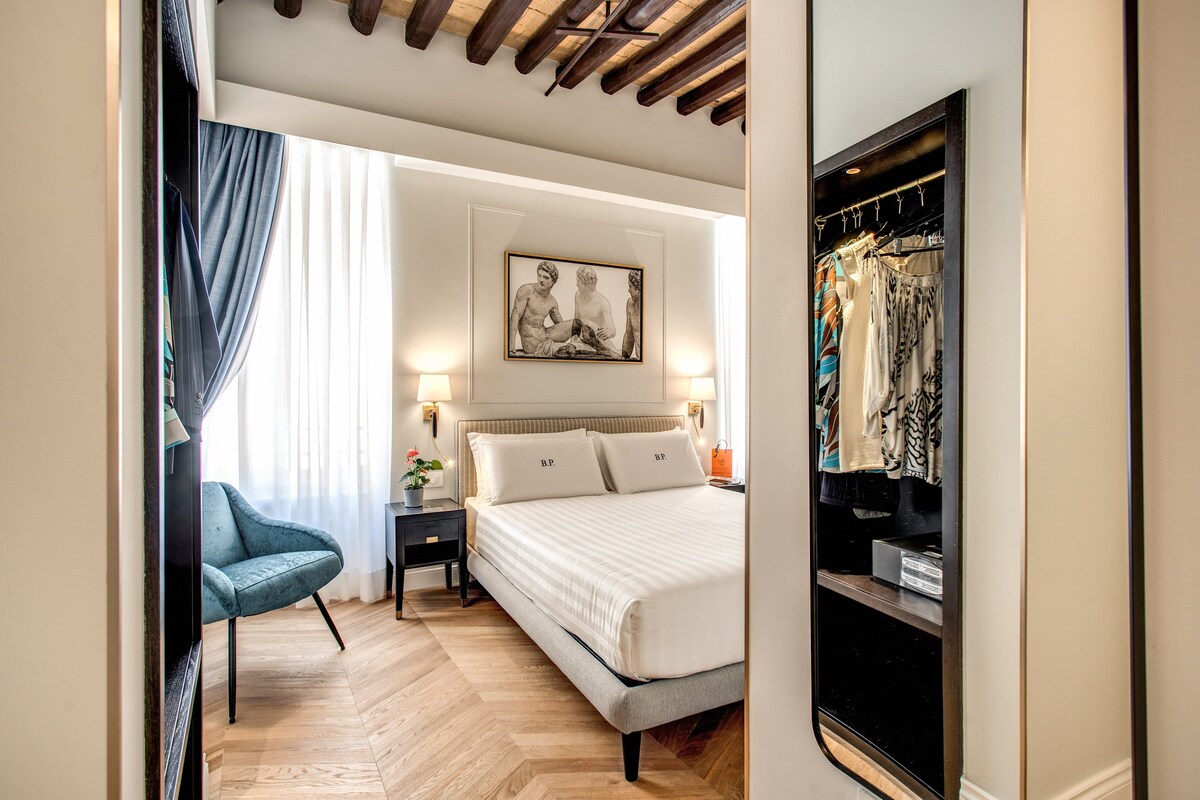 Við erum staðsett í hjarta Rómar, við eina af þekktustu götum rómverskra verslana, á fyrstu hæð byggingar frá 800, aðeins er hægt að komast upp stiga og stutt að ganga frá Piazza di Spagna Piazza Navona og helstu kennileitum. Það er með 3 rúmgóðar og fágaðar svítur með einkabaðherbergjum og ýmiss konar þægindum: innifalið þráðlaust net, loftræsting, eplasjónvarp, Netflix, bar á horninu með góðum drykkjum, Nepressokaffi, te og jurtate, öruggt og ókeypis sett. Þrif eru dagleg.