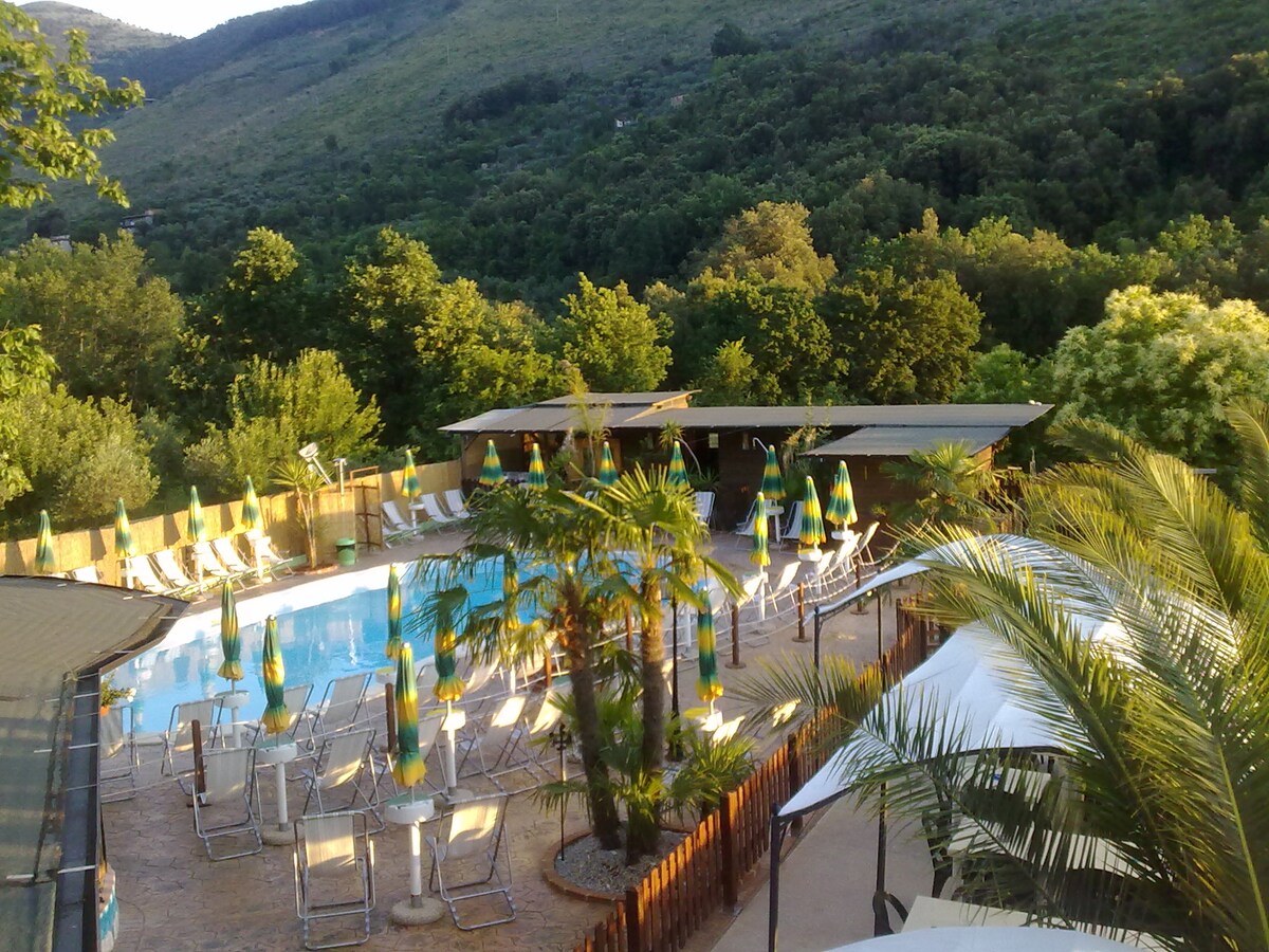 Staðsetning við hliðina á notalegri sumarsamstæðu þar sem þú finnur veitingastað,bar,sundlaug (innifalin í verði næturinnar með verandarstólum og sólhlíf) , líkamsrækt, nuddpottur og gufubað(gegn gjaldi) og leiksvæði fyrir börn! Svæðið er umkringt gróðri : ólífulundi, ávaxtatrjám: alvöru paradísarhorn umkringt náttúrunni. Miðbær Sonnino er aðeins í 3 km fjarlægð og næstu strendur eru aðeins í 20 mínútna akstursfjarlægð: Sabaudia, Terracinaog San Felice Circeo. Bílastæði innifalið í verði.