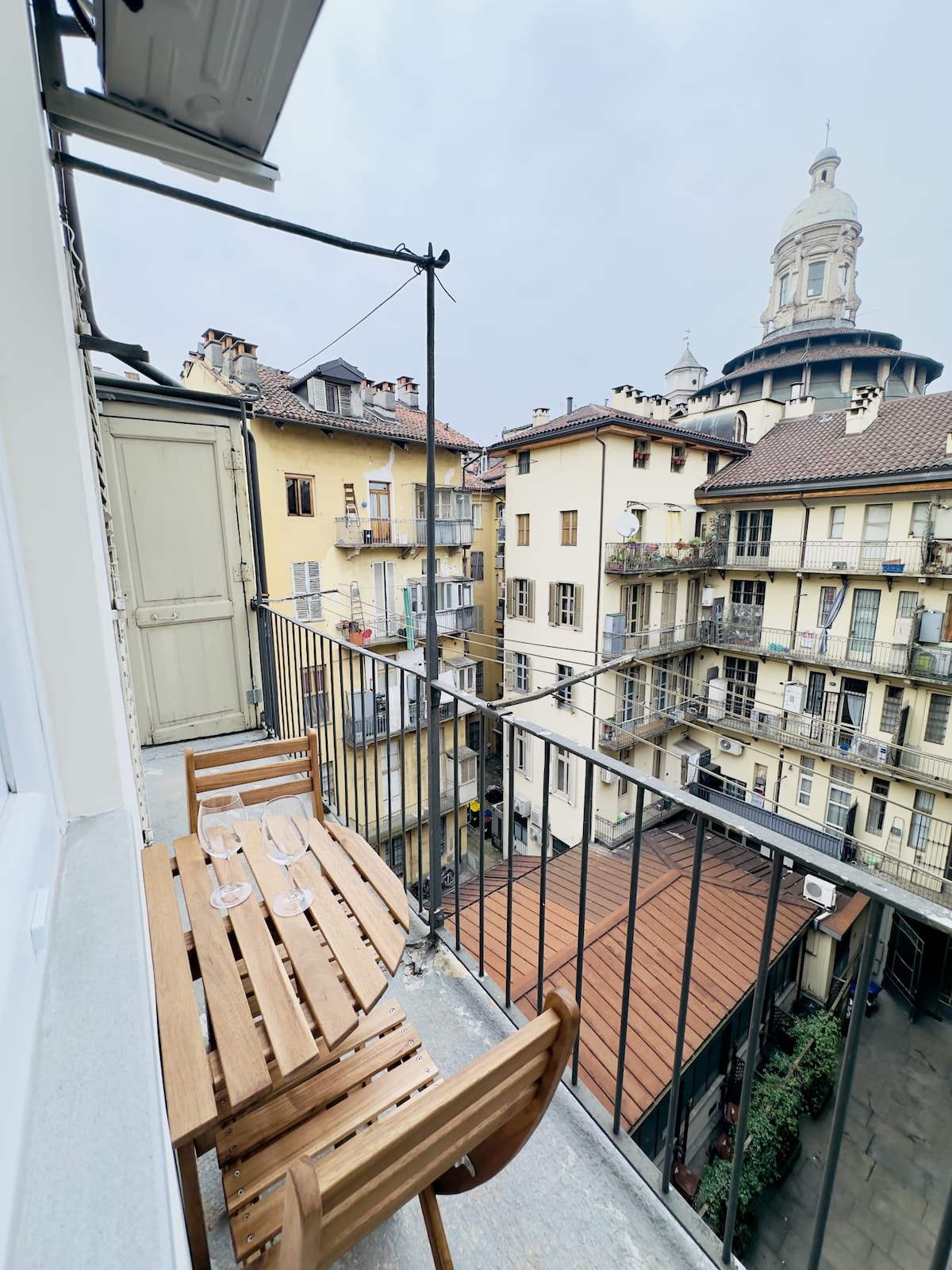 Beautiful 100 sqm apartment, newly renovated in the heart of Turin, just 2 minutes from Porta Nuova and Via Roma. It features 2 bedrooms, a bathroom, modern kitchen, living room, two balconies, quality furnishings, smart home system, and air conditioning. Perfect for families and remote work. Guests enjoy free private parking. Carefully renovated, located in a privileged position in a safe and well-maintained building, a short walk from the historic center and the residential area of “Crocetta”.