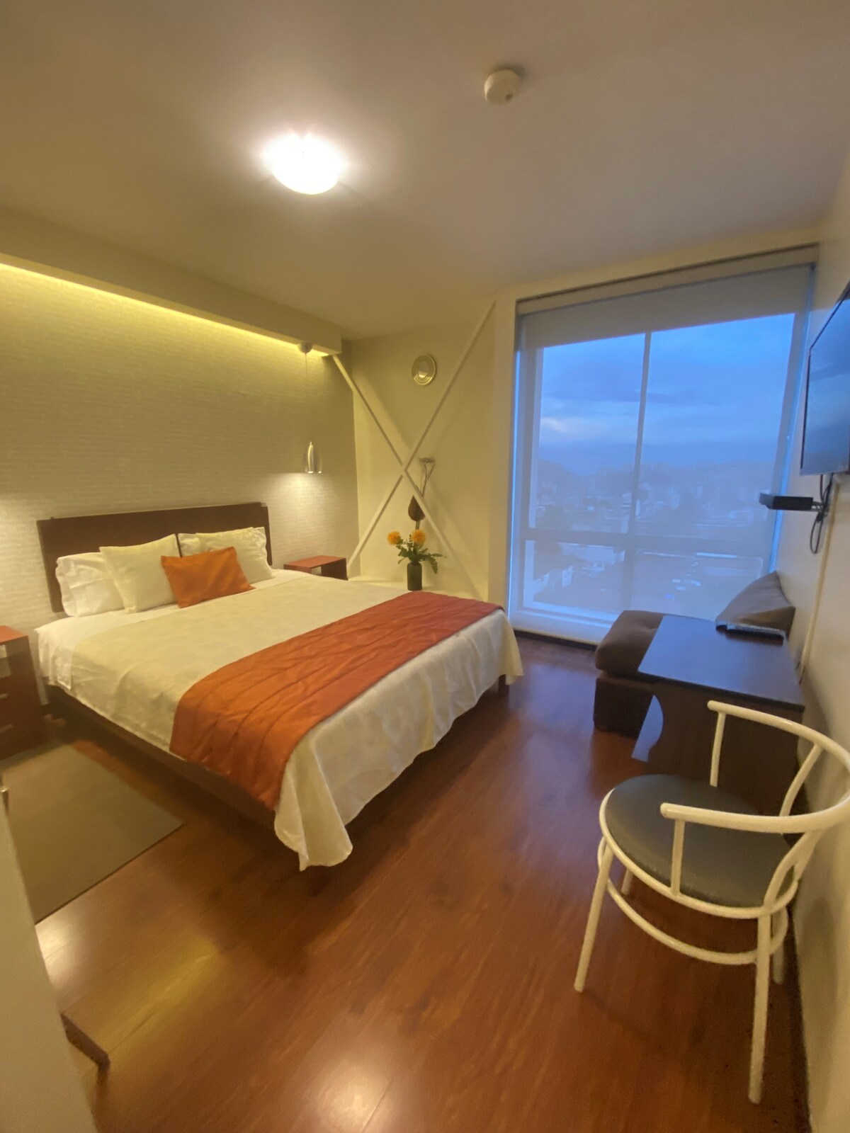 Herbergi í einstöku og einstöku hönnunarhóteli, staðsett í sögulega miðbæ Quito, gerir þér kleift að njóta stórkostlegs útsýnis yfir allt að 360 gráður í átt að sögulega miðbænum og eldfjöllum hennar, með framúrstefnulegri og nýklassískri skreytingu. Þessi arkitektúr býður upp á rými og horn sem munu gera þig að ógleymanlegri upplifun.