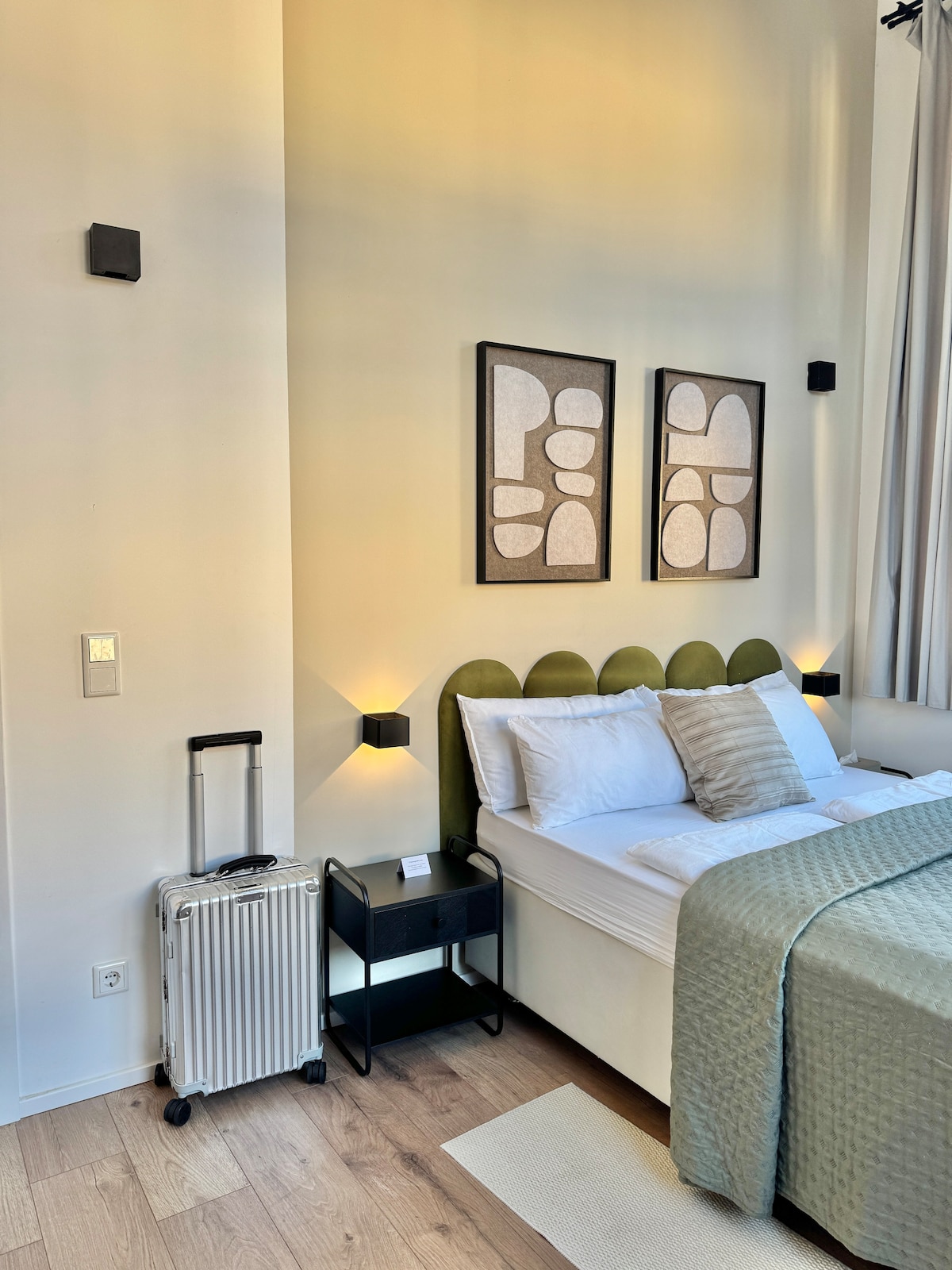 Verið velkomin til Ruby Leni þar sem afslappað andrúmsloft mætir ríkri leikhússögu Düsseldorf. Heillandi Nest herbergið okkar (14-16m²) er fullkomið fyrir stutta dvöl fyrir einn eða notalegt frí fyrir tvo. Rúmið sem er 160 cm breitt og mjög langt með íburðarmiklum rúmfötum tryggir rólegan svefn. Njóttu ofgnóttar loftræstingar, hraðs þráðlauss nets, Marshall ampera og hressandi regnsturtu með Ruby Care ilmmeðferðarvörum. Borgarskattur er innifalinn í verði.