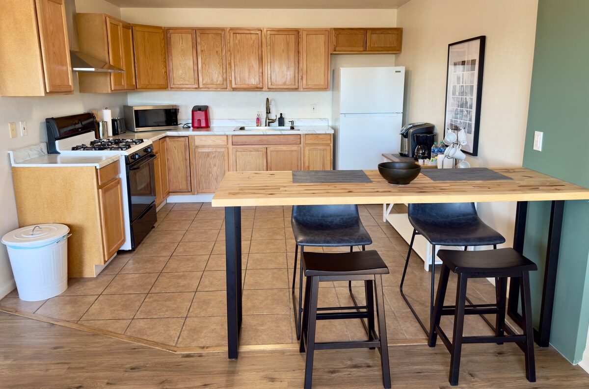 Notaleg íbúð á annarri hæð sem hentar fullkomlega fyrir hvíldar- eða vinnuferðir. Hér eru 2 svefnherbergi, 1 fullbúið baðherbergi og eldhús sem er útbúið til að útbúa matinn meðan á dvölinni stendur. Aðgangur er hagnýtur og öruggur þökk sé stafrænum diskum svo að þú getir farið inn án fylgikvilla. Auk þess er einkabílaplan fyrir bíl sem veitir þér þægindi og öryggi. ⸻ Veitur innifaldar • Uppbúið eldhús (eldavél, ísskápur, nauðsynleg áhöld) • Fullbúið baðherbergi.