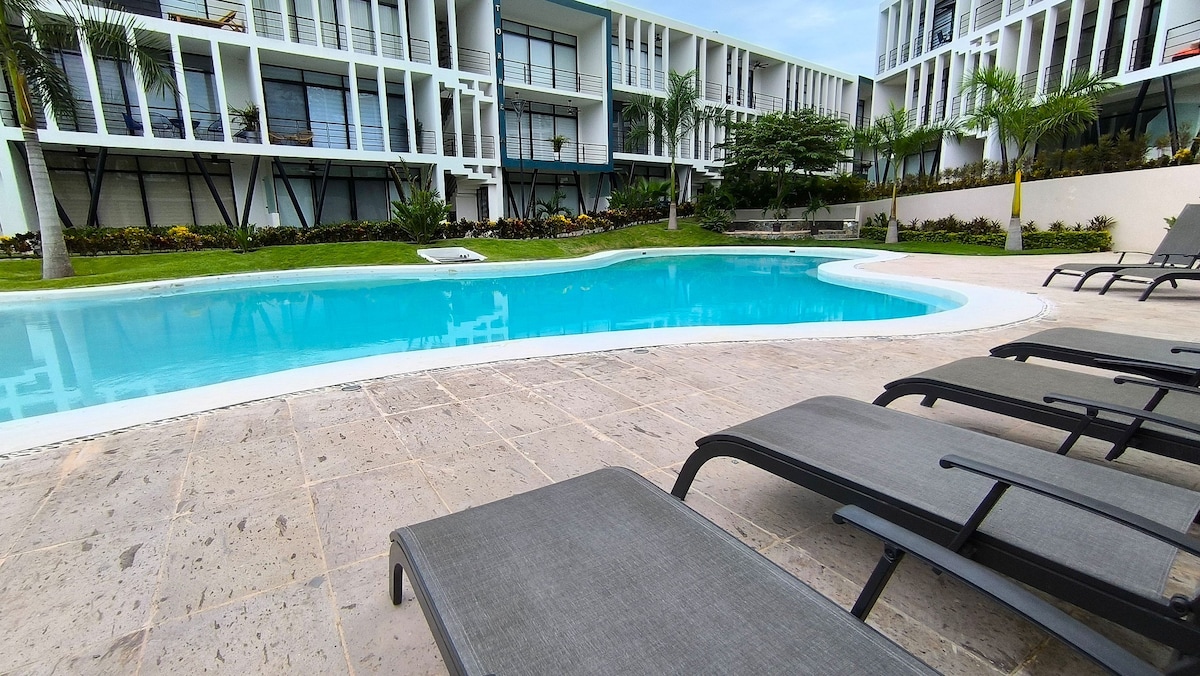 Escápate al paraíso en este exclusivo departamento con alberca estilo resort. Disfruta de amplios espacios, una cocina equipada y una terraza privada con vista a los jardines. Relájate en la alberca rodeada de vegetación y toma el sol en el área lounge. Perfecto para una escapada romántica, unas vacaciones en familia o un descanso total. Vive la experiencia de un resort con la privacidad de un hogar. ¡Reserva ahora y haz de este condominio tu próximo destino! Ubicado a solo 15 min de las playas
