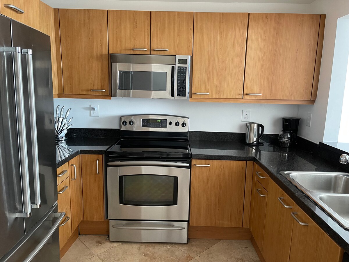 Beint útsýni yfir hafið/efstu hæð(5) Center of South Beach Open Bright Livingroom 180° Views of the water from Bedroom to Dining room. Ein mínúta frá lyftunni og tærnar lenda á sandinum. Uppfært 2 bd 2,5 ba er fullt af ferskum rúmfötum, baðhandklæðum meira að segja strandhandklæði. Casa Grande Suites. Slakaðu á í sófanum með 1 af 3=75"snjallsjónvarpinu, Central (2)Miðstýrð loftræsting Fullbúið eldhús Main Brm has 2 Queen beds, Second bedroom has a King Bed 3 þvottahús á staðnum. BTR014423-09-2023