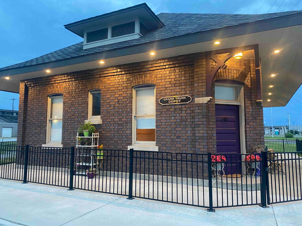 An old train depot renovated into Muskegon's most luxurious boutique hotel. The hotel boasts 3 guest rooms, all with private entrances and bathrooms with high end fixtures. Each room is charming with exposed brick and original architectural features throughout. Modern touches give the space a fresh, clean feel. Each room has a wet bar with glassware provided as well as a mini fridge. Located across the street from Muskegon Lake and in walking distance to downtown restaurants, bars and shops.