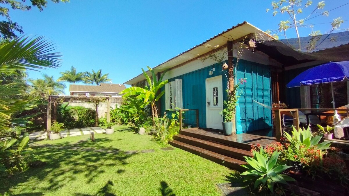 Njóttu heillandi sveita þessa rómantíska staðar í náttúrunni. 50 metrum frá Perequê ströndinni, spennandi gámahúsi með öllu sem þú þarft. Fullbúið eldhús, sjónvarp, borðstofuborð, þægilegt herbergi í miðri náttúrunni, í miðju Ilhabela. Nálægt öllum verslunum, börum, veitingastöðum, mörkuðum, apótekum, bakaríum og öllu sem þú þarft. Og með bílastæði fyrir allt að 2 bíla.