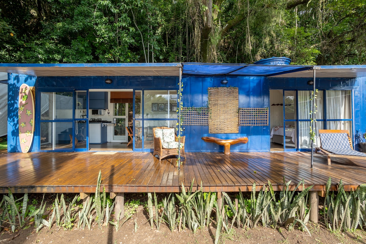 Þetta sjarmerandi Container hús er með amerísku eldhúsi/stofu og einkaverönd, staðsett í 1 km fjarlægð frá ströndum Félix og Prumirim. Enn er hægt að komast á Félix-ströndina á litlum stíg sem tekur aðeins 15 mínútur. Einnig er hægt að komast að fossinum og Prumirim ströndinni. Þessi skáli er með greiðan aðgang að Rio Santos-hraðbrautinni og er frábær fyrir fólk sem vill skoða strendur í norðurhluta ubatuba. Við erum með strætóstoppistöð beint fyrir framan eignina.