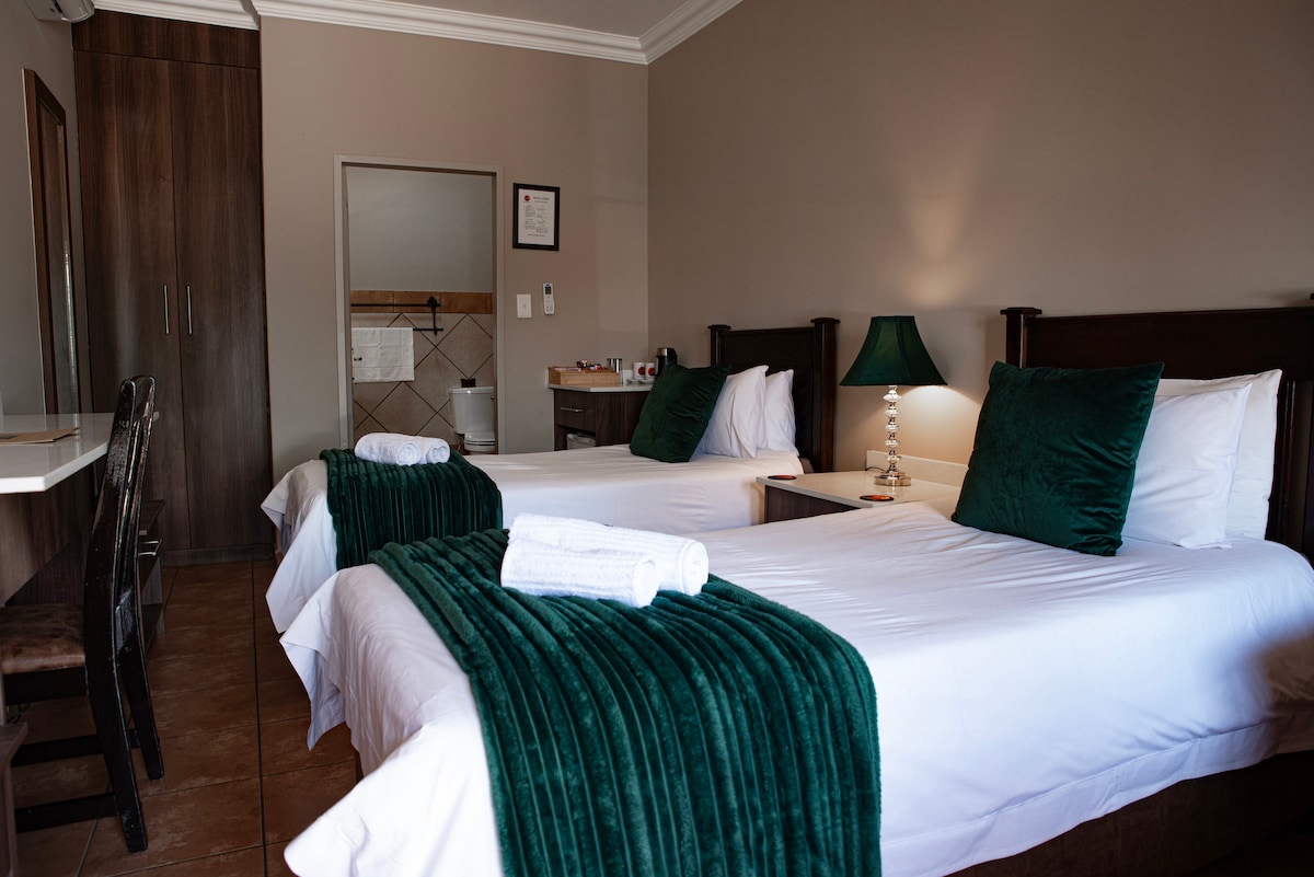 Í þessu hefðbundna, notalega herbergi er rúm í king-stærð, skrifborð og fataskápur. Hér er sjónvarp með DStv, ísskápur með bar, örbylgjuofn, kaffi-/teaðstaða og loftvifta. Á en-suite baðherberginu er sturta, salerni og handlaug