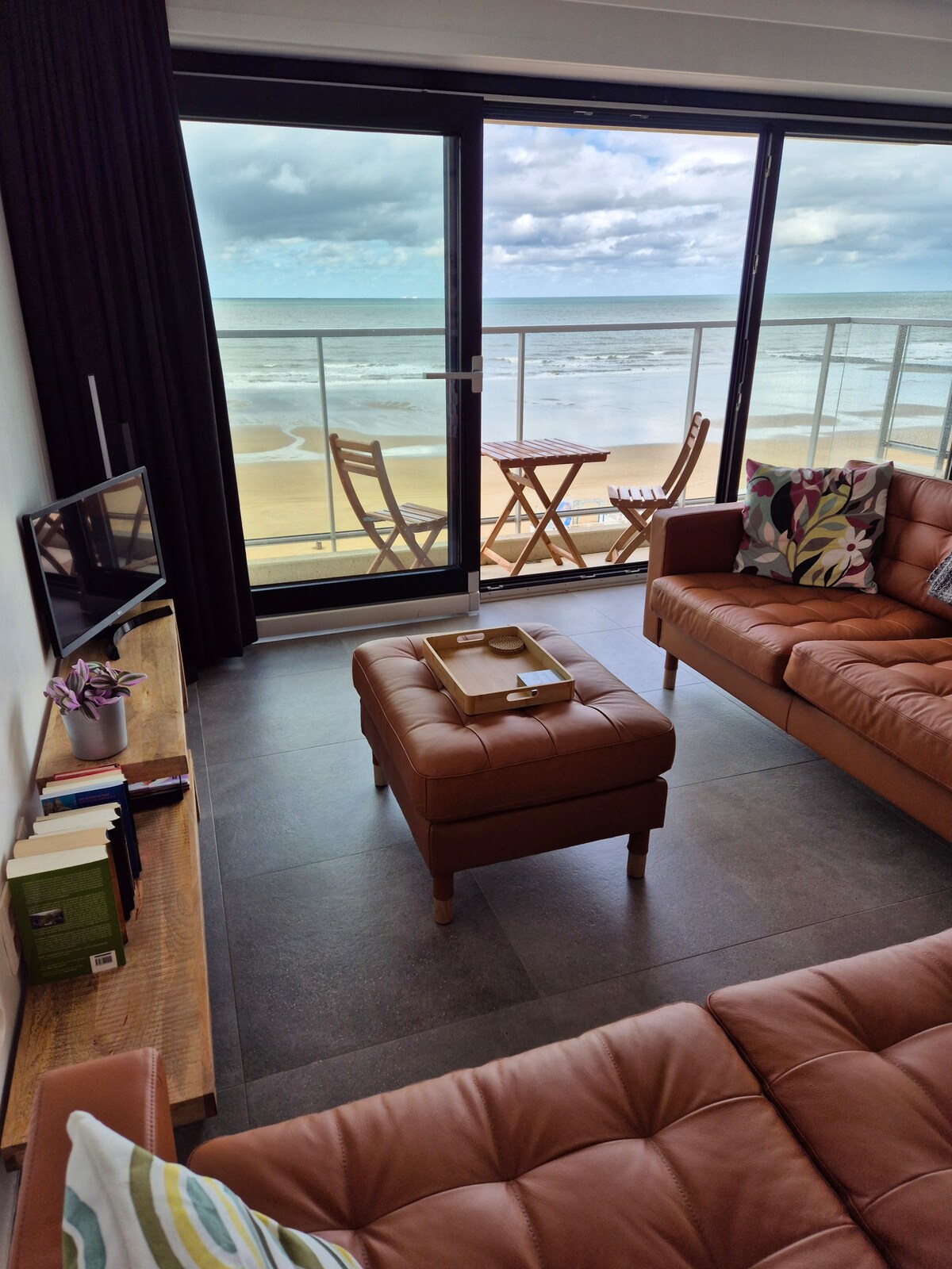 Í friðsælum hluta Middelkerke finnur þú glæsilega, nýuppgerða tveggja herbergja íbúð okkar, staðsett beint við sjávarbakkann. Frá 7. hæð geturðu notið fallegs sjávarútsýnis með kaffi á morgnana eða forrétt á veröndinni í kvöldsólinu. Það er tvíbreitt rúm og 2 einbreið rúm í boði. Svefnsófi í stofunni býður upp á auka svefnpláss fyrir 2 manns. Flatskjá, Wifi, Netflix, regnsturtu, samsettur ofn, Dulce Gusto, strandbar fyrir framan dyrnar, sporvagnastoppistöð 10 m