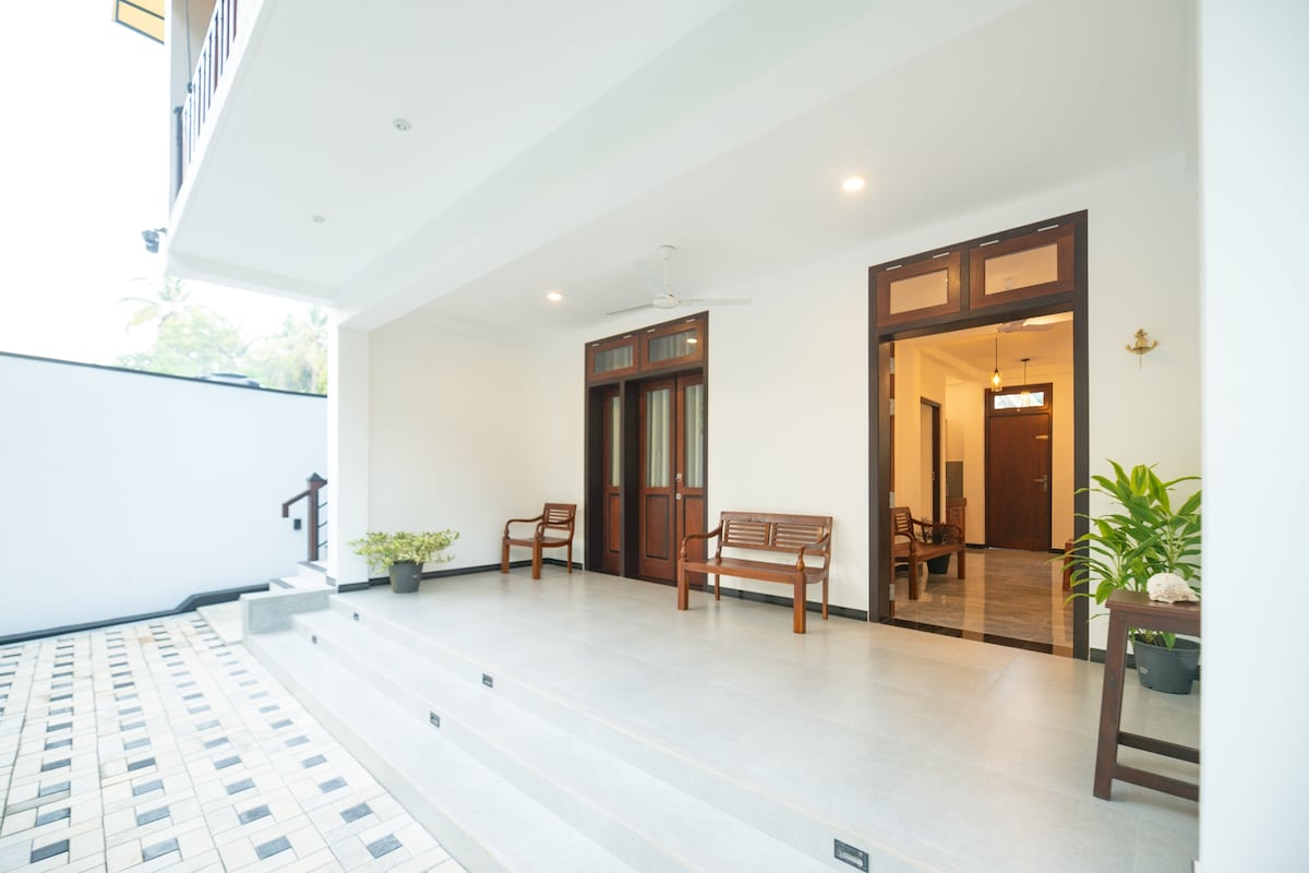 Welcome to The Palazzo – Weligama! The villa is situated in a high-demand area of Polwatta, Weligama, just 900 metres from the beach. It offers all the latest facilities, including luxury bedding, air conditioning, Fibre Optic internet, a TV, a bathroom with hot water, a washing machine, and a fully equipped kitchen. Enjoy both indoor and outdoor dining areas, as well as a charming garden perfect for relaxing. The whole Ground Floor Apartment is exclusively yours; stay as your own home!