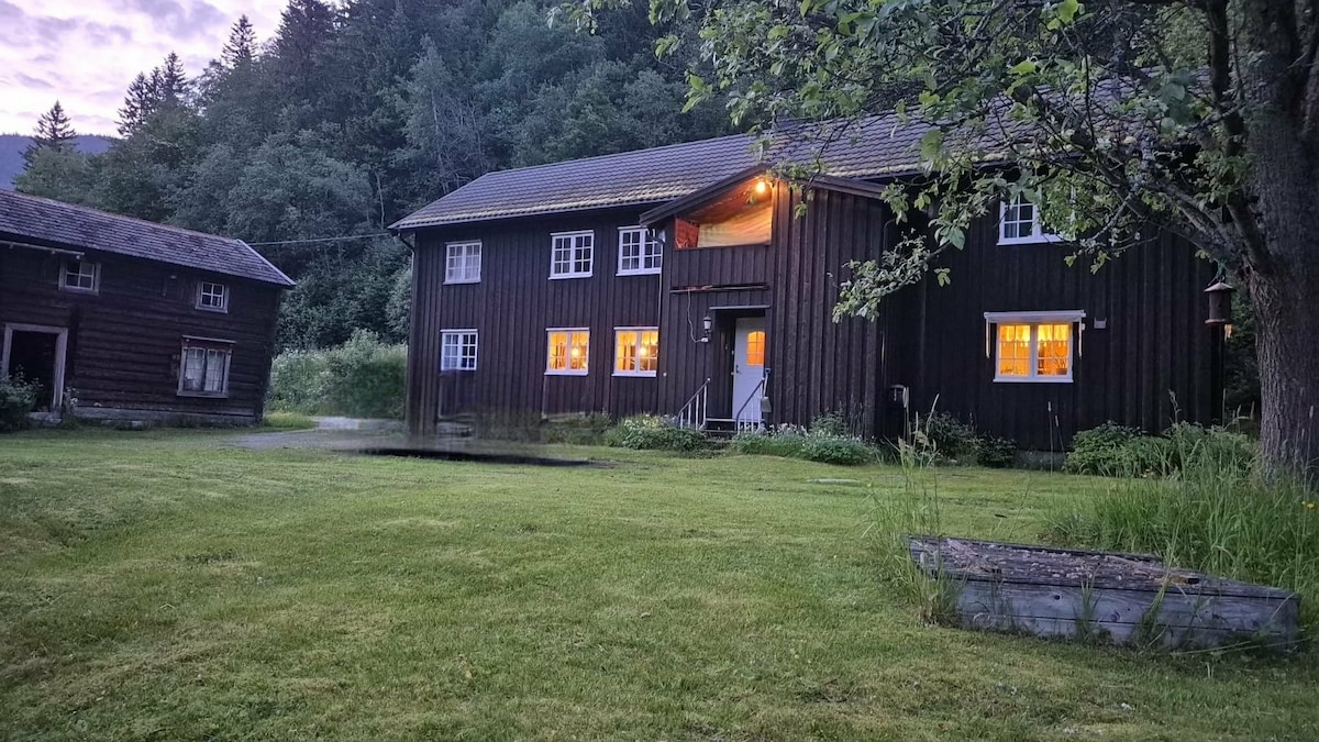 Hvíldu höfuðið við gamla timburveggi og njóttu útsýnisins yfir akra, skóga og fjöllin í fjarska. Ef heppnin er með þér getur þú séð bæði dádýr, elg og dádýr. Svefnherbergið er á annarri hæð og á þeirri fyrstu er notaleg stofa þar sem þú getur slakað á og fengið þér kaffibolla eða tebolla. Einnig er hægt að njóta kaffibollans á veröndinni fyrir aftan gömlu hlöðuna. Salernið er gamaldags útisalerni á bak við hlöðuna og til að blómstra hér verður þú að halda að þetta hafi sinn sjarma. Þú finnur vaskadiska á salerninu fyrir handþvott.