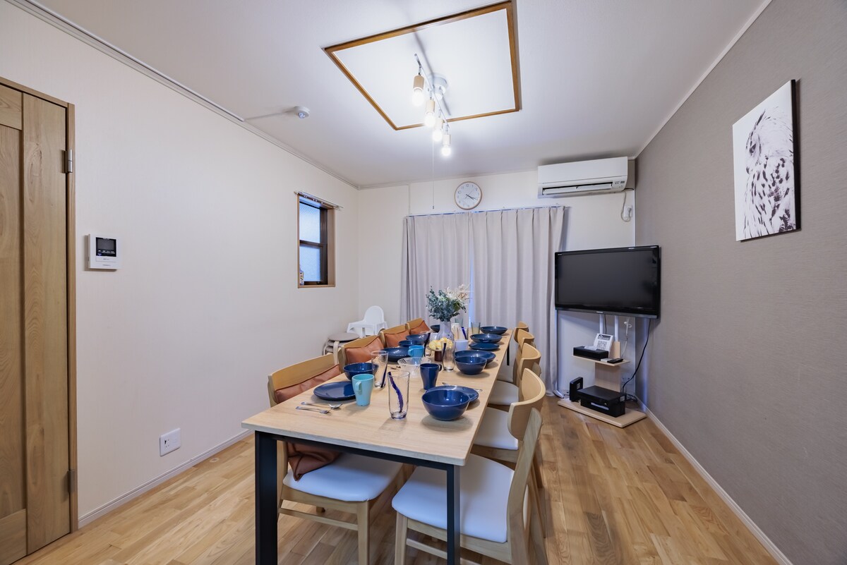 GUEST HOUSE Hotori 2nd is a cozy terrace house in a quiet neighborhood near Lake Biwa, just 11 minutes by train from Kyoto Station. It offers a Western-style room downstairs and a tatami room upstairs, combining modern comfort with traditional charm. A high chair and kids’ tableware are available for families. Zeze Station is a 7-minute walk and Keihan Nishiki Station is 2 minutes. A drugstore (with fresh foods), coin parking, sento bath, and convenience store are all within 2–5 minutes.