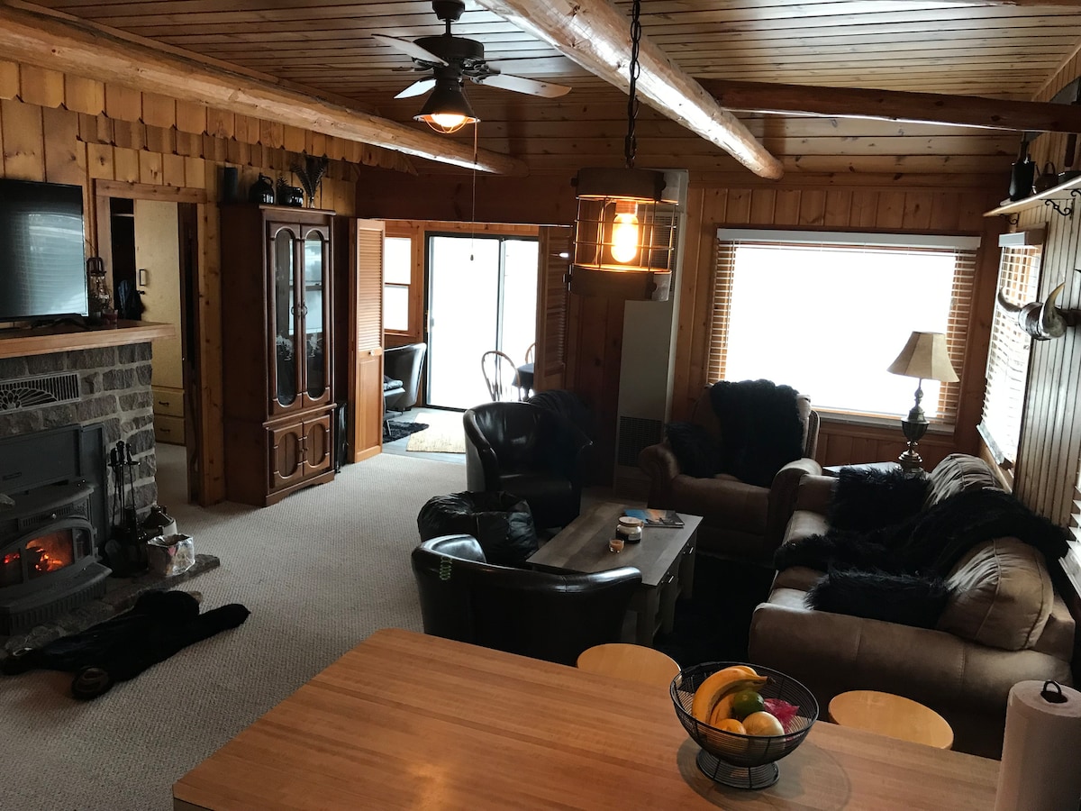 „Slappaðu af og myndaðu tengsl við náttúruna í afskekkta kofanum okkar sem er fallega staðsettur í friðsælu skóglendi. Slakaðu á á veröndinni, á veröndinni eða í kringum eldstæðið. Aðalskálinn býður upp á þrjú notaleg svefnherbergi og ris en sérstakur frístundakofi býður upp á afþreyingu með poolborði, píluspjaldi, fullbúnu baði, bar, tveimur sjónvörpum með stórum skjá og pókerborði. Stígar fyrir fjórhjól og snjósleða í aðeins 3 km fjarlægð og þúsundir hektara af opinberu veiðilandi í nágrenninu.“