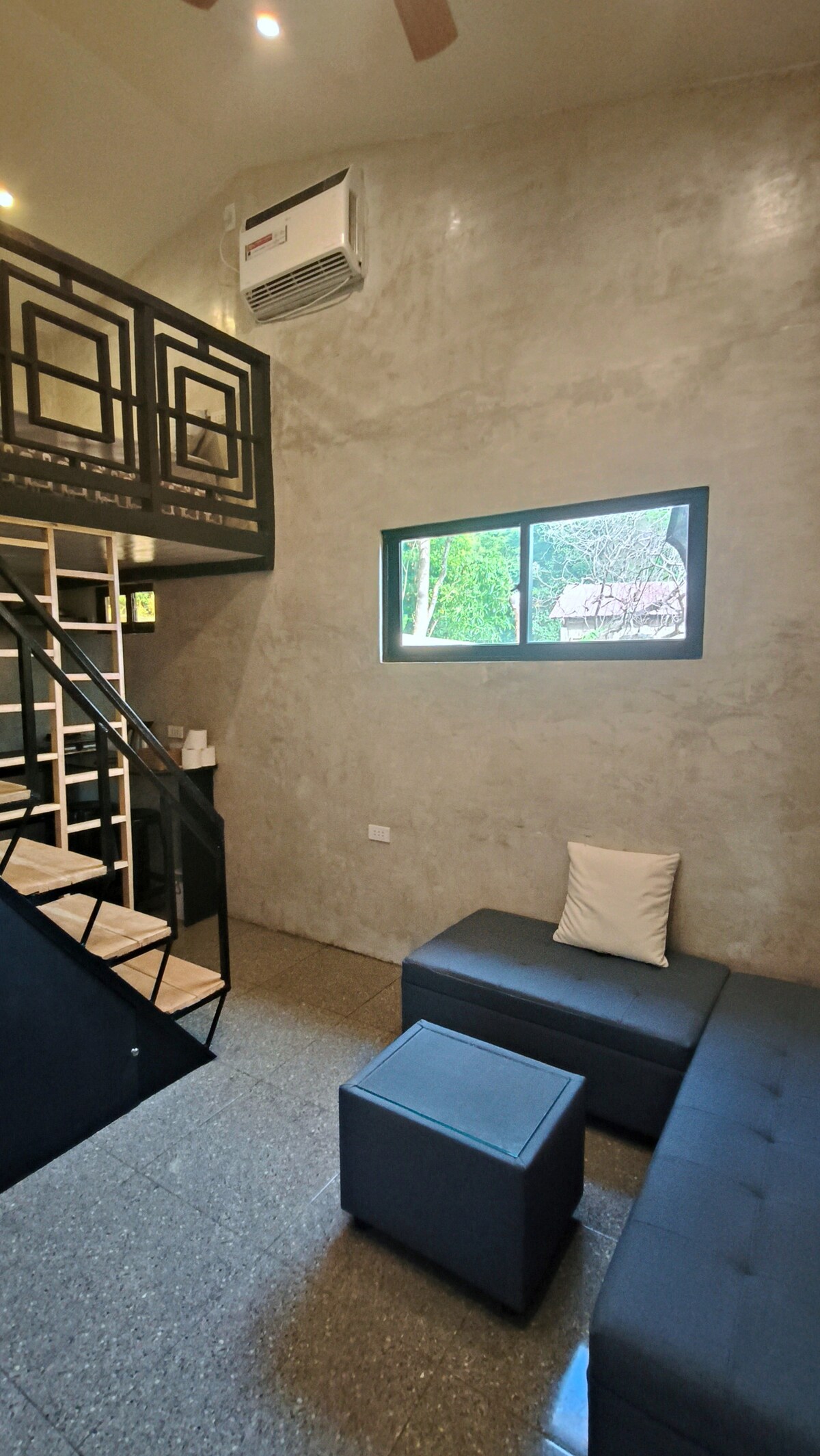Þetta er afdrepið þitt miðsvæðis í El Nido! Loftíbúðin er í göngufæri frá flugstöðinni, markaðnum, veitingastöðum, börum og ströndum. Nógu langt frá erilsömum bæ en nógu nálægt til að njóta alls þess sem El Nido hefur upp á að bjóða. Þessi nýbyggða nútímalega loftíbúð býður upp á queen-rúm, eldhúskrók, þægilegt baðherbergi, setustofu og mjög hratt þráðlaust net. Njóttu kyrrðarinnar í friðsælu afdrepi þínu í El Nido!