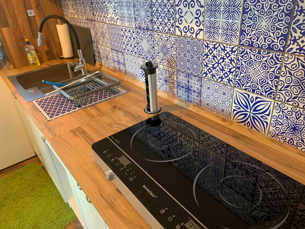 Mod. Furnished apartment with 60 sqm can accommodate up to 2 persons dining: box spring beds, sofa, TV, Wi-Fi. Eldhúsið er búið eldavél, örbylgjuofni, uppþvottavél, kaffivél, tekatli, ísskáp, ofni og þvottavél. Íbúðin skiptist í stofu / svefnherbergi, baðherbergi með baði(sturtu). Handklæði og rúmföt eru til staðar hjá okkur. Íbúðin er á 1 hæð. Reykingar bannaðar inni í íbúðinni. Ekkert veisluhald.