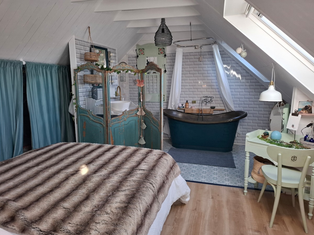 Maisonnette atypique dans grange rénovée à neuf.