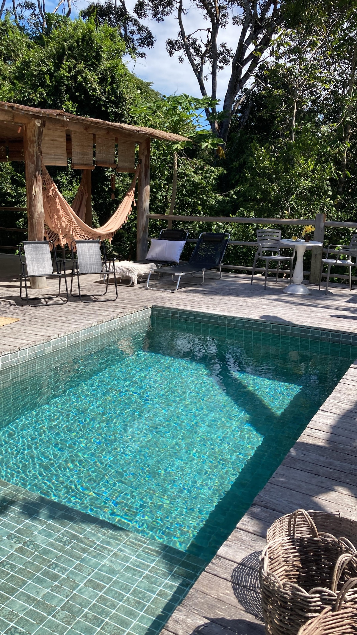Vila Acayu er orlofsheimili sem sökkt er í náttúruna. Innblásin af sveitaleika og fegurð Trancoso og Grikklands. Með paradísarblárri laug sem er umkringd kasjúhnetutrjám og plöntum. Hér eru nokkrir krókar til að slaka á í sveitalegri og notalegri innréttingu. Hér er stórt sælkerasvæði með grilli, eldavél, svölum og stofu með snjallsjónvarpi (engar lokaðar rásir). Allar svíturnar eru með loftkælingu, tjaldhimni og frigo. Staðsett í afgirtu samfélagi við Monkey Road, 1,5 km frá hinu fræga Quadrado.