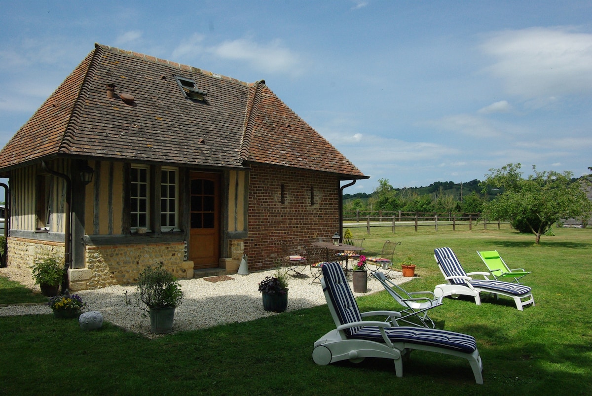 Le Charme du Pays d'Auge a Proximite de la Côte 3 Couchages + 4eme couchage sur demande ( lit gigogne 90/200 ) Lits faits et linge de maison fournis. - Ancienne Bouillerie du 17eme siècle,rénovée avec des matériaux authentiques Logis avec sa terrasse privée bordée de haies et fleurs , au coeur d'un Parc paysagé de 2 ha Ping pong;Portique enfants; jeu petanque Tennis privé accessible sur demande Commerces à 3km Non recommandé pour personnes a mobilité réduite Animaux de compagnie non admis