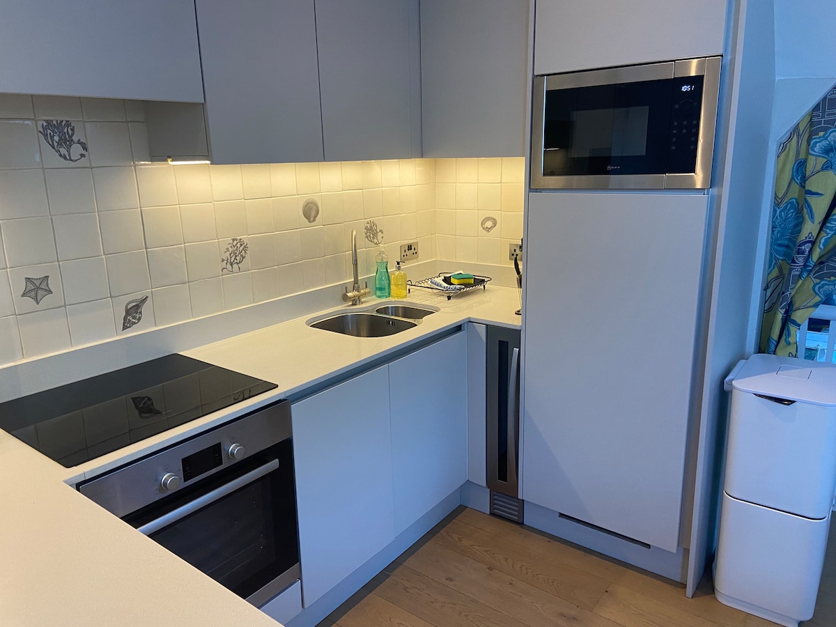 Treetops er yndisleg nýlega uppgerð, nútímaleg íbúð á fyrstu hæð með tveimur svefnherbergjum. Íbúðin er með opnu eldhúsi, matsölustað sem gerir hana fullkomna fyrir barnafjölskyldur og hunda! Íbúðin er í einnar mínútu göngufjarlægð frá aðalbílagarðinum þar sem þú getur stokkið upp í bæjarrútu eða í fimm mínútna göngufjarlægð frá hæðinni að hástrætinu! Eldhúsið er fullbúið með uppþvottavél, ísskáp, frysti, ofni og örbylgjuofni. Þvottavélin er staðsett í útihúsinu í garðinum!