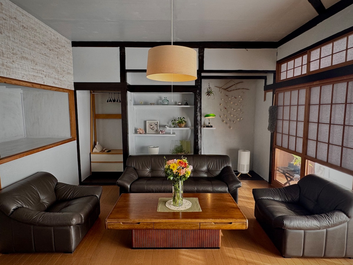 Þessi aðstaða er einkarekin gisting í útleigu á Miyazaki/Aoshima-svæðinu þar sem þú getur slakað á með fjölskyldunni og hundinum þínum. Eigandinn er einnig hengirúmsmiður og er með upprunaleg handprjónuð hengirúm í stofunni, svefnherberginu og viðarveröndinni. Njóttu sérstaks tíma í einkarými sem takmarkast við einn hóp á dag, umkringdur náttúrunni. ⸻ 📍Staðsetning og eiginleikar • 1 mínútu göngufjarlægð frá JR Kodomo-no-Kuni stöðinni á Aoshima-svæðinu í Miyazaki-héraði • Rólegt íbúðahverfi á móti „Kodomo no Kuni“ • 3 mínútna göngufjarlægð frá sjónum (einnig ráðlagt fyrir hundagöngu) • Gjaldfrjáls bílastæði í boði á staðnum • Kaffihús á staðnum (opið frá 11: 00 til 17: 00) • Hengirúm í boði (innan- og utandyra) • Á staðnum er hengirúmsverkstæði í garðinum (hundahlaup) en vinnustofan er lokuð meðan á dvölinni stendur • Rúmar allt að 6 manns/einkaleigu fyrir 1 hóp á dag ⸻