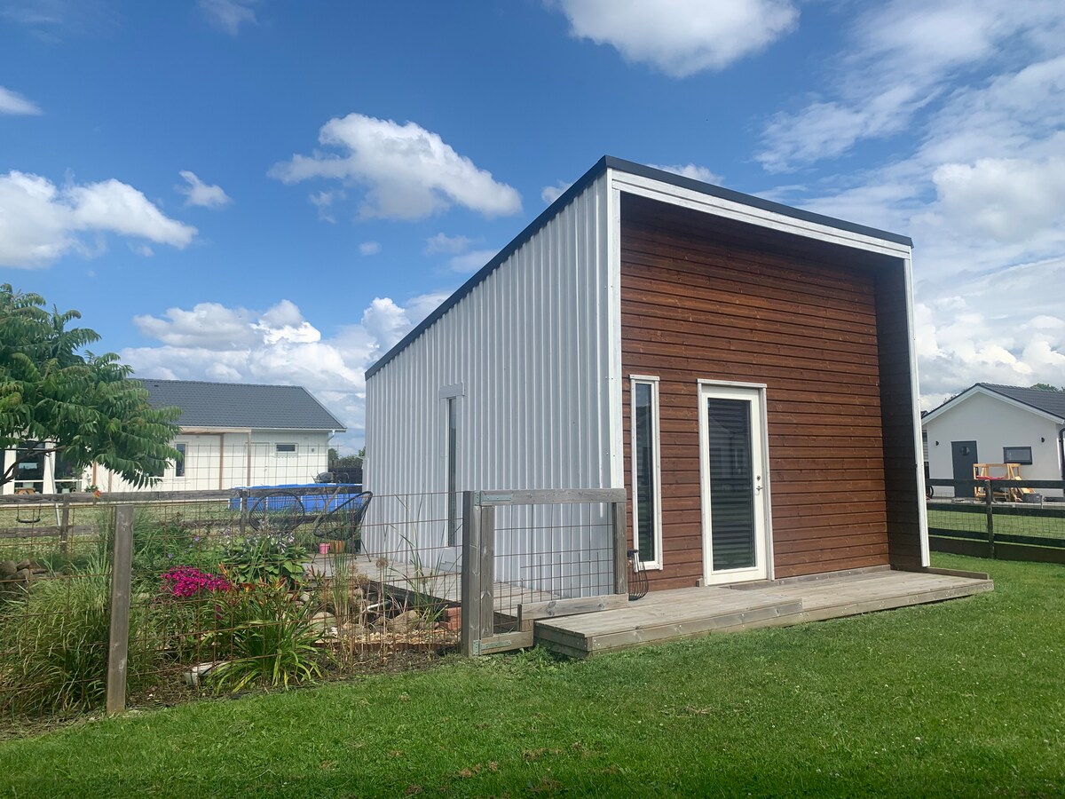 Í botni fallega garðsins okkar er notaleg viðbygging sem þið hafið út af fyrir ykkur. Viðbyggingin hefur verið nýuppgerð í heillandi og notalegum stíl. Þar er te-eldhús þar sem hægt er að útbúa morgunmat. Ef þið viljið elda heitan mat, vinsamlegast veljið annað AirBnB. Viðbyggingin er nálægt skógi og strönd. Viðbyggingin er staðsett 1 km frá miðbænum og 1,5 km frá matarmarkaði, stöðinni og Kronborg.