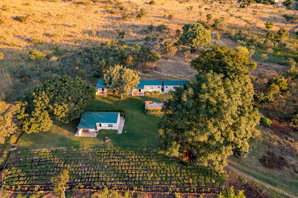 Lítið hús mitt á milli trjánna í pekanhnetuekru. Þessi glæsilega eining er í Melody Hill Retreat eigninni - hægt er að skipuleggja jógatíma og kahuna-nudd við komu. Þú getur gengið í pekanhnetuhnetunni eða gengið í gegnum völundarhúsið. Þú munt koma auga á apa, runnabörn, íkorna, porcupine og mikið af hornbills meðan á dvöl þinni stendur. Njóttu fullkominna vetrardaga við hliðina á viðararinn.