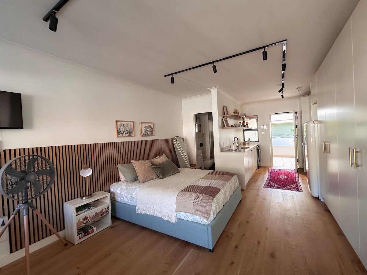 Nútímalegir stílhreinir hönnunarþættir umlykja þig í þessu flotta og rúmgóða stúdíói í hjarta Sea Point með ótal frábærum matsölustöðum, kaffibörum og næturstöðum. Þessi stúdíóíbúð er nálægt öllu því ótrúlega sem Höfðaborg hefur upp á að bjóða. Röltu að Promenade og andaðu að þér fersku sjávarloftinu og syntu við Sea Point Pavilion. *Athugaðu að bygging á sér stað í byggingum í nágrenninu. Ef þú ert léttur svefn - komdu með eyrnatappa. * Hefur áhrif á rafmagnsskerðingu