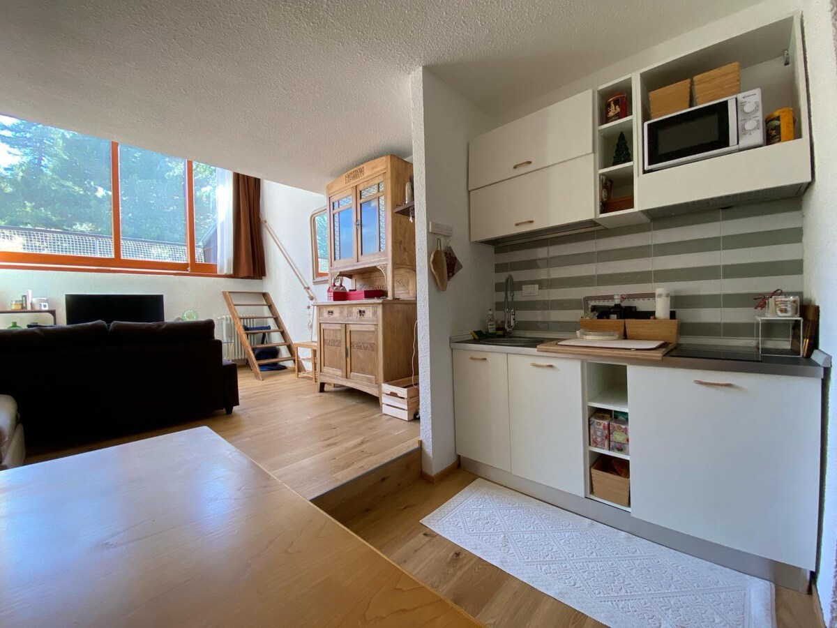 60 mq íbúð á fyrstu hæð: inngangur með tveimur stökum rúmum á fullbúnum vegg, stofu og litlu eldhúsi með uppþvottavél, tvöföldu svefnherbergi og tveimur baðherbergjum, einu með slöngu og einu með sturtu. Stórar 14mq svalir, suður esposition. Bílskúr og sameiginlegur þvottahús í byggingunni. Þú getur farið inn og út með skíði á fótunum, brekkurnar eru fyrir framan bygginguna, engin þörf á að taka upp bílinn þinn!