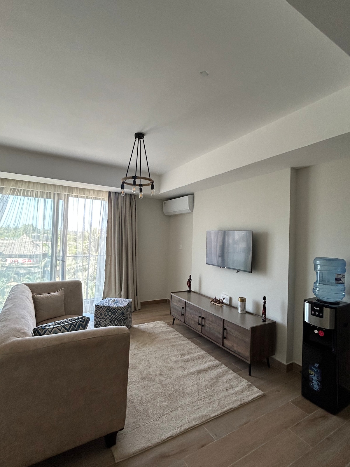 Þessi bjarta og vel innréttaða stúdíóíbúð, með beinu aðgengi að fallegu Bamburi-ströndinni, er fullkominn staður fyrir frí eða fjölskylduferð. Þægindi eru til dæmis veitingastaður og bar, líkamsræktarherbergi, sundlaug og barnalaug. Strandhornið okkar er kyrrlátt og rólegt en þú kemst í fjöruga strandgöngu innan nokkurra mínútna. Það er auðvelt að komast á aðra afþreyingarstaði (City Mall Nyali, Haller Park og Mombasa Marine Park).