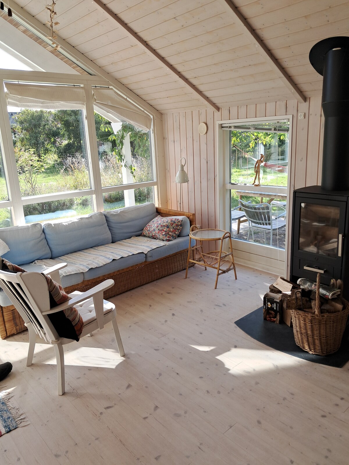 Fallegt bjálkahús með 3 herbergjum/7 rúmum. Staðsett á stórum og friðsælum lóð við enda lokaðs vegar, aðeins 900m frá fallegri strönd. Eldhús og stofa í opnu sambandi. Nútímaleg og afslöppuð innrétting og loft til að kippa gefur yndislega tilfinningu fyrir rýminu. Risastór garður með nokkrum veröndum, þar af tveimur yfirbyggðum. Húsið er vel einangrað og hentar fyrir allt árið, með góðu lofti innandyra. Húsið er vel búið öllu sem þarf til að elda. ATH: Komið með eigin rúmföt/handklæði eða leigið þau þegar þið bókið.