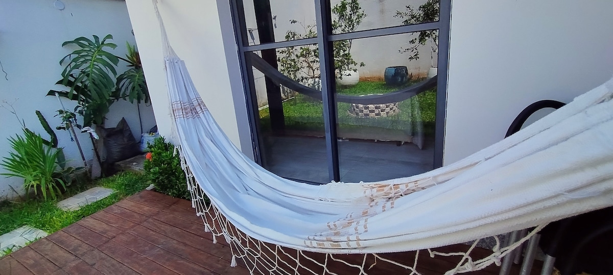 É um prazer recebê-lo em meu lar. Como parte da minha jornada pessoal, decidi compartilhar esse ambiente único com viajantes que desejam desfrutar de uma acomodação especial e acolhedora. A casa é totalmente equipada com utensílios mais que essenciais para garantir uma estadia tranquila. Os quartos estão equipados com ar condicionado, proporcionando conforto personalizado, enquanto a sala é ventilada, ideal para momentos de descontração. Praia fica a 5 mim a pé. Não fico na casa.
