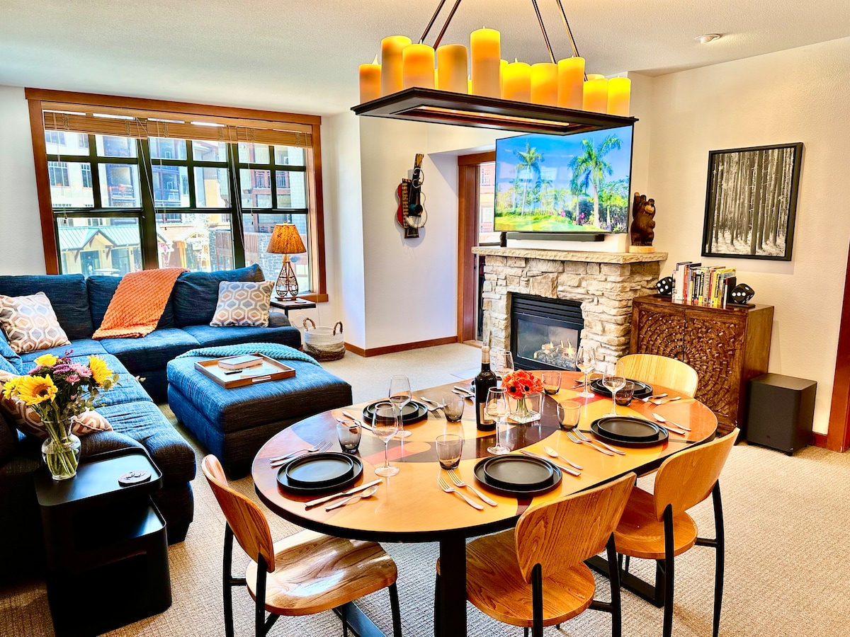 Íbúðin okkar með einu svefnherbergi er staðsett inni í Village Lodge og er með besta staðsetninguna í bænum... The Village Lodge! Aðrir auglýsa Village staðsetningu en í raun eru þeir nokkrar blokkir í burtu. Ekki við. Óaðfinnanlega hreina íbúðin okkar er steinsnar frá tugum veitingastaða, matsölustaða og verslana. Náðu Gondola niðri án þess að hafa meira lugging skíði og búnað. Leggðu í neðanjarðar bílskúrnum okkar og notaðu hann aldrei það sem eftir er af dvölinni!