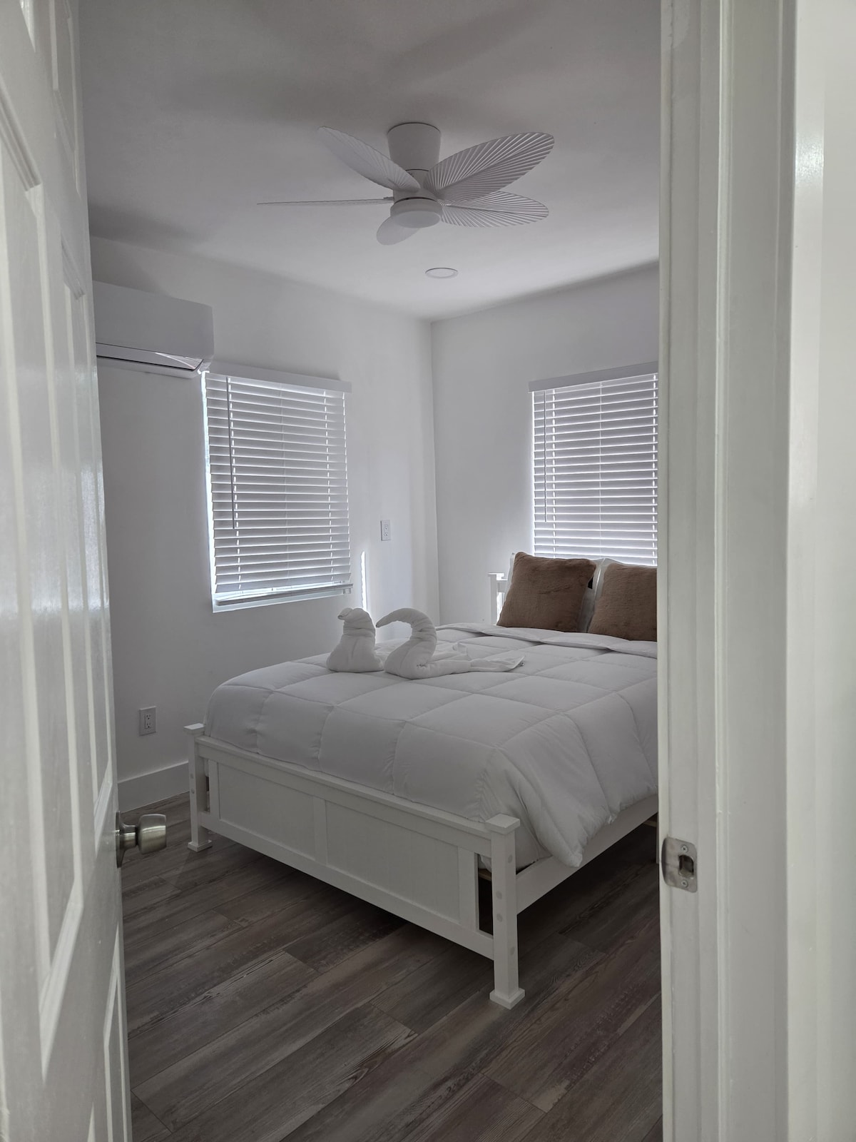 Cozy and complete 2-bedroom apartment on the second floor, ideal for up to 4 guests. Includes 2 queen beds, 1 bathroom, and a small kitchen with basic hotel-style utensils. No living room. Just 7 min from the airport and 20 min from the beach. Safe, central area with restaurants, gas station, supermarket, and pharmacy within 5 min walking. Private parking in front of the house.