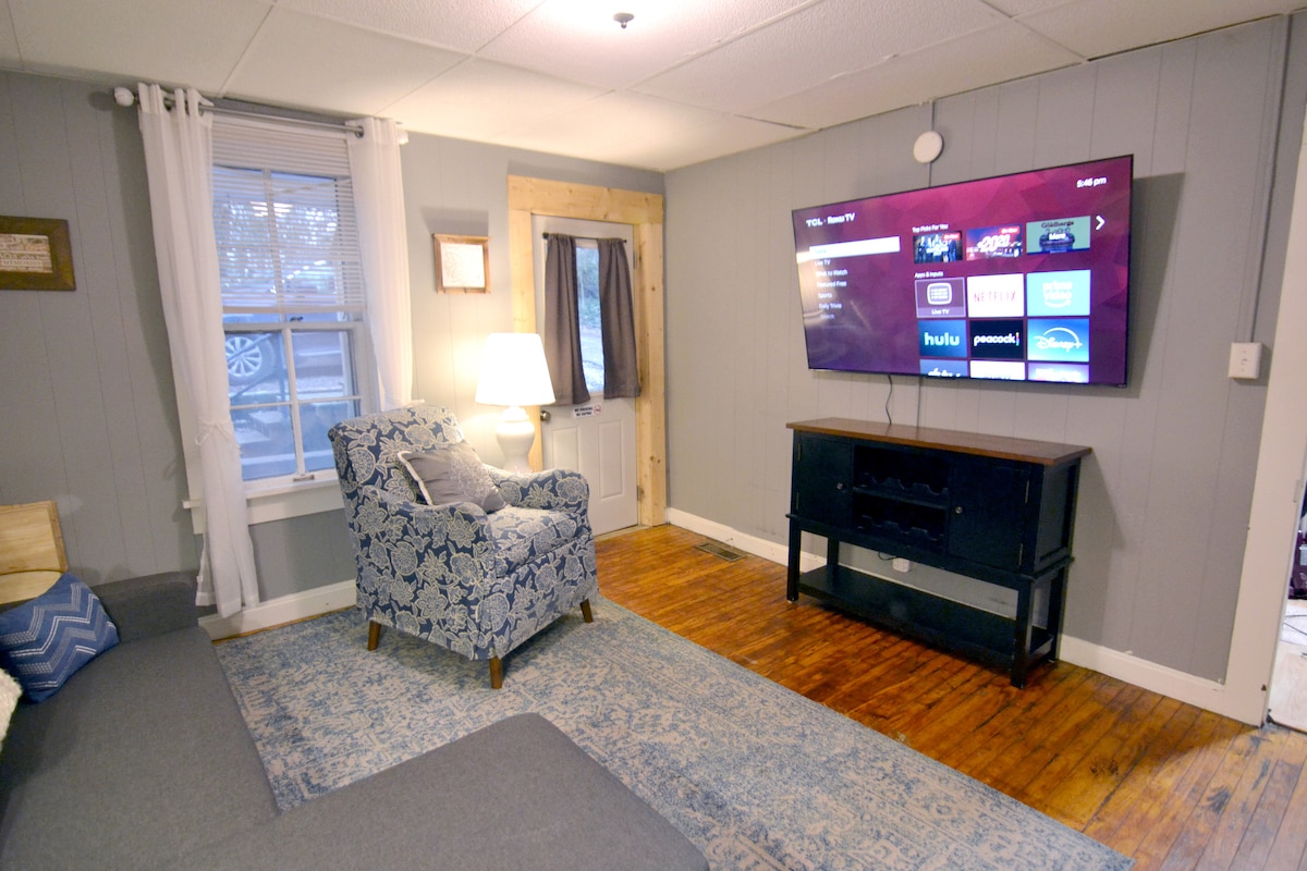 Við erum þægilega staðsett í göngufæri frá Downtown, Bryan Park og The B-Line Trail, 1,6 km til IU Campus, 1,8 km frá Assembly Hall og 3,5 mílur til IU Hospital. Ástkæra lúxusíbúðin okkar er einn fallegasti staðurinn til að gista í bænum. Það fór í gegnum sérsniðnar endurbætur á jarðhæð með hvítum eikarharðviðargólfum, kvarsborðplötum og úrvals tækjum og keppti við úrvals svítu á hönnunarhóteli með auknu næði, sjarma og þægindum heimilis á frábæru verði.