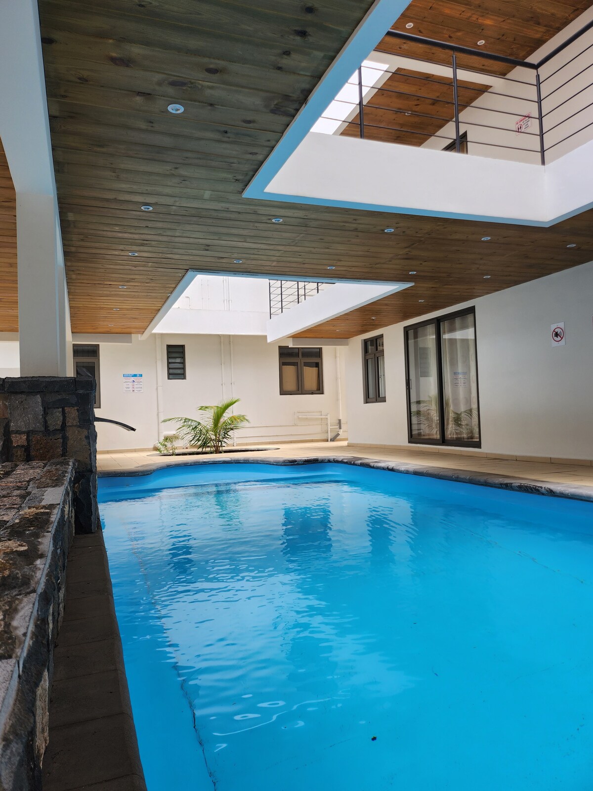Cet élégant appartement offre un cadre idyllique pour des vacances inoubliables. Résidence avec piscine lagon de 2500 m² équipée de transats et entourée de cocotiers , salle de fitness (payante), sécurité 24h/24, parking privé, wifi gratuit Emplacement idéal à 3 min de la plage de Mont Choisy et proche du Golf. La proximité avec Grand Baie permet de profiter des centres commerciaux, restaurants et vie nocturne animée de la région. Parfait pour des vacances en famille, entre amis ou en couple.
