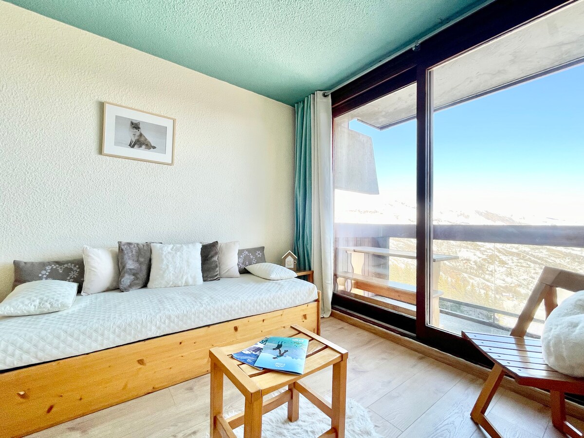 Studio avec balcon panoramique, au pied des pistes