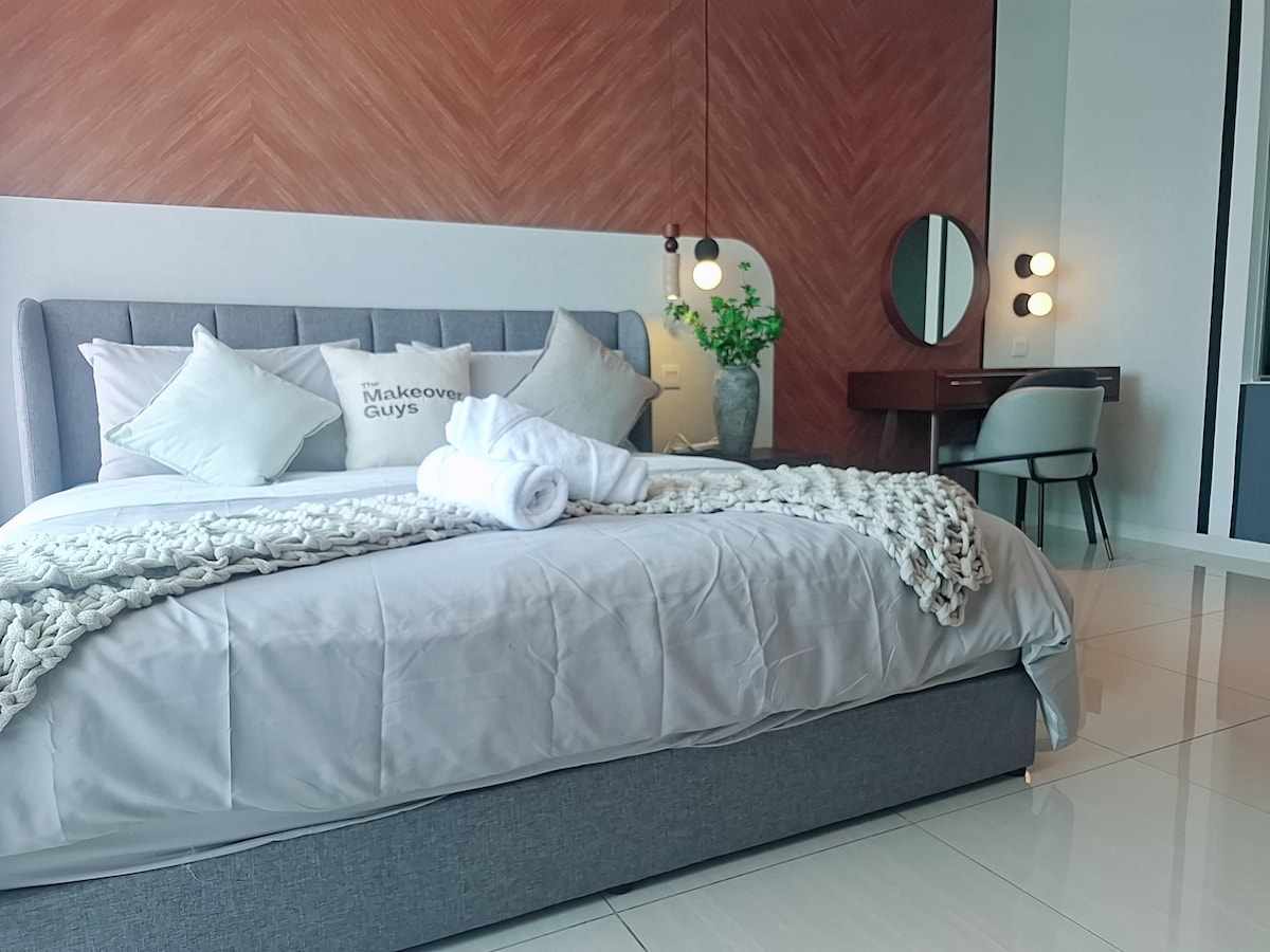 📍Pertama Residency Verið velkomin í Grey City! Þetta stúdíó er nýlega sett upp með mikilli ást, sameinar nútímalegar innréttingar og nútímaleg þægindi og upplifun sem öll geta notið sérstaklega nuddpottar með ást þinni og 100" skjávarpa m/Netflix. Þessi einstaki staður hefur sinn stíl, hann býður upp á notalegt, hreint, rólegt og hressandi dvalarumhverfi fyrir pör. Komdu og upplifðu þig í Grey City! Sjáumst.