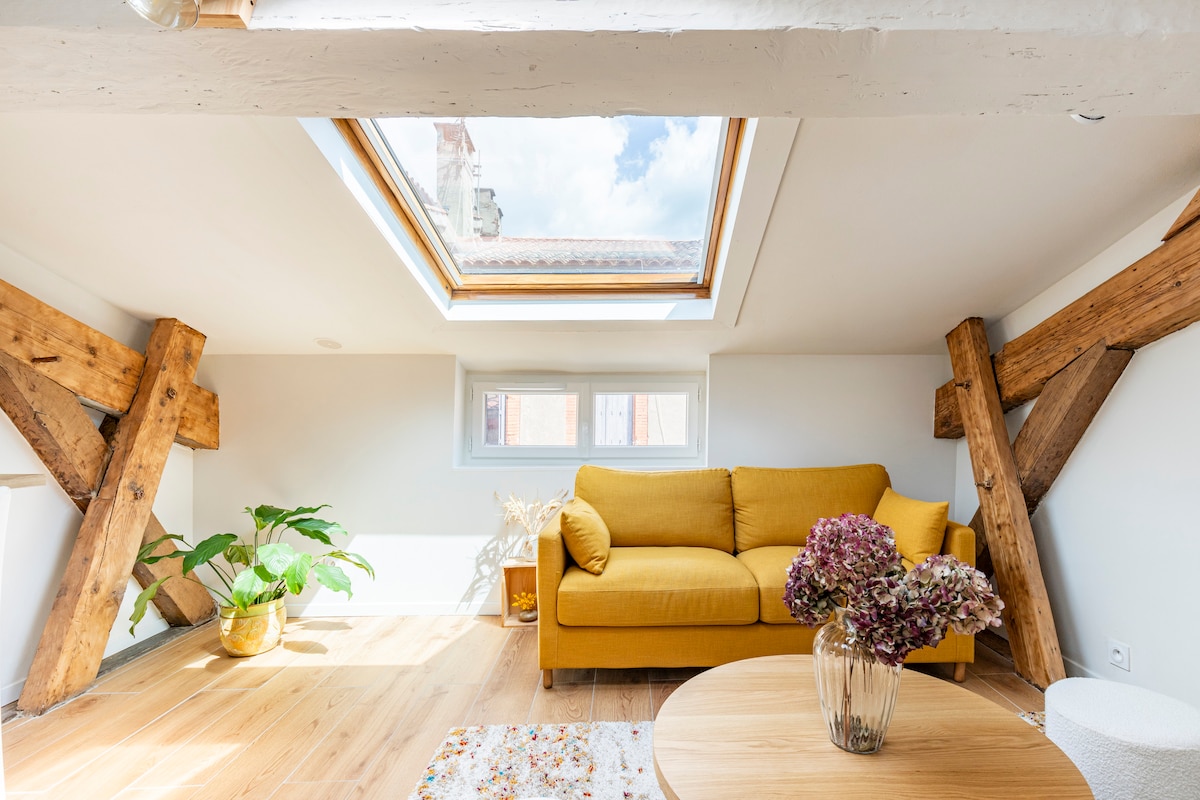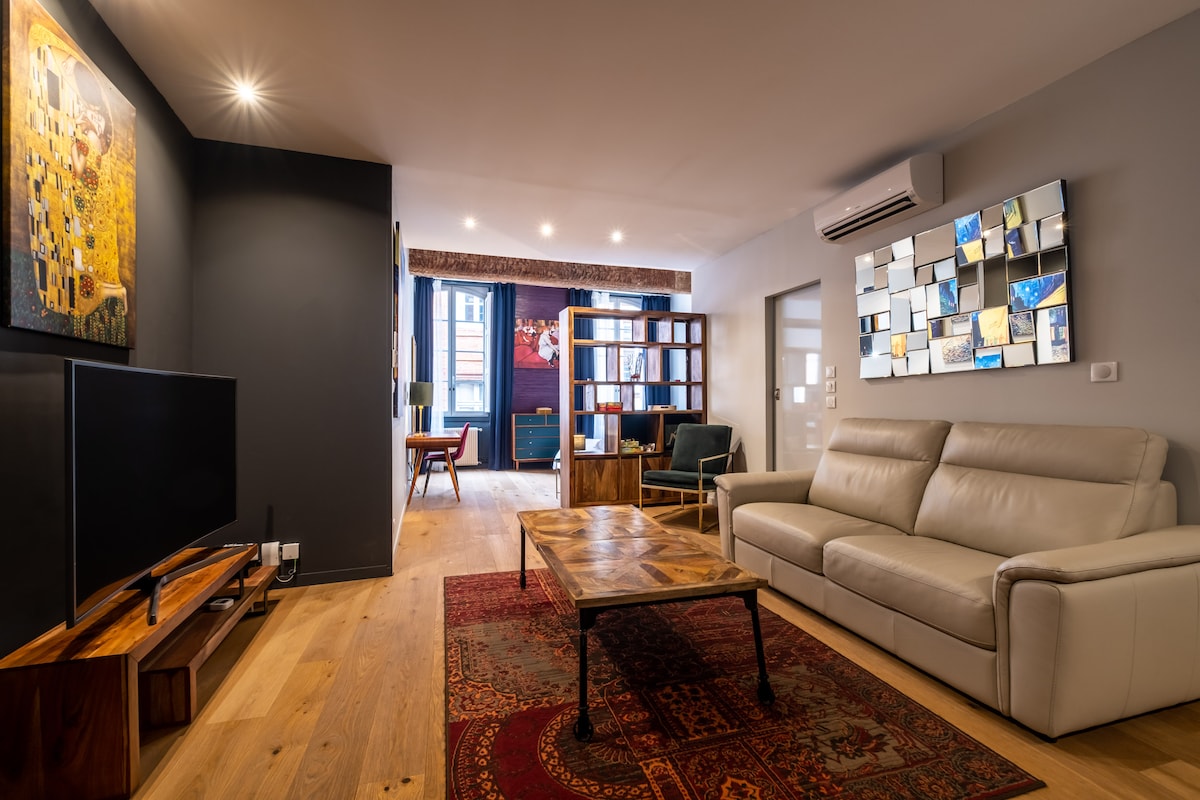 Komdu og kynnstu þessari frábæru fulluppgerðu íbúð í hjarta miðborgarinnar. Þetta er notalegt, stílhreint og fullbúið og verður bandamaður þinn til að eiga notalega dvöl í bleiku borginni. Þú getur gengið hratt og auðveldlega um sundin í Toulouse, hvort sem það er fótgangandi, með neðanjarðarlest eða á hjóli.