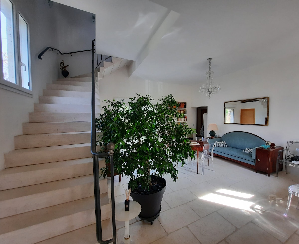 Milli bæjar og sveita, lítið hús sem er 40 m², við hliðina á okkar, með litlum garði. Sjálfstæður inngangur, bílastæði fyrir framan. Allt er til staðar á staðnum fyrir morgunverðinn (kaffi, te, mjólk, ávaxtasafi, brauð, smjör, heimagerðar sultur) Barnabúnaður (rúm, stóll, baðkar). BZ sófinn er aukarúm. Lítið sveitaloft 3 km frá sögulegum miðbæ Montauban, 2 km frá lestarstöðinni, 1,5 km frá Canal. Sjá upplýsingar um hverfið. Afsláttur er 20% á viku.