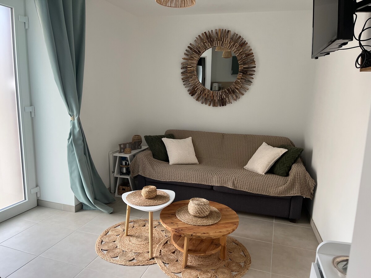Í stórri öruggri einkaeign með hliði og bílastæði finnur þú fullkomna undirstöðu. Fallegt stúdíó á 32 m2 mjög þægilegt. Staðsett á rólegu svæði og nálægt aðalvegi. Þú færð gott 2ja manna rúm, nýja dýnu, huggara og notalega kodda. Rúmföt og handklæði eru til staðar og allt verður tilbúið til að taka á móti þér. Stúdíóið er fullbúið með sjónvarpi /þráðlausu neti+ duo raclette + tæki sem nauðsynlegt er til eldunar.