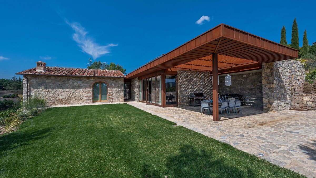 A Jewel of an apartment in the heart of Tuscany. Magnað útsýni yfir kýpres- og ólífutré. Beamed loft, marmaragólf, allt nýlega endurnýjað. Íbúðin er með antíkviðarrúm og feneysk ljós. Þú getur slakað á og borðað „Al Fresco“ í einkagarði þínum þar sem sólbekkir eru með grilli og skyggðu matarsvæði og notið fallega útsýnisins.