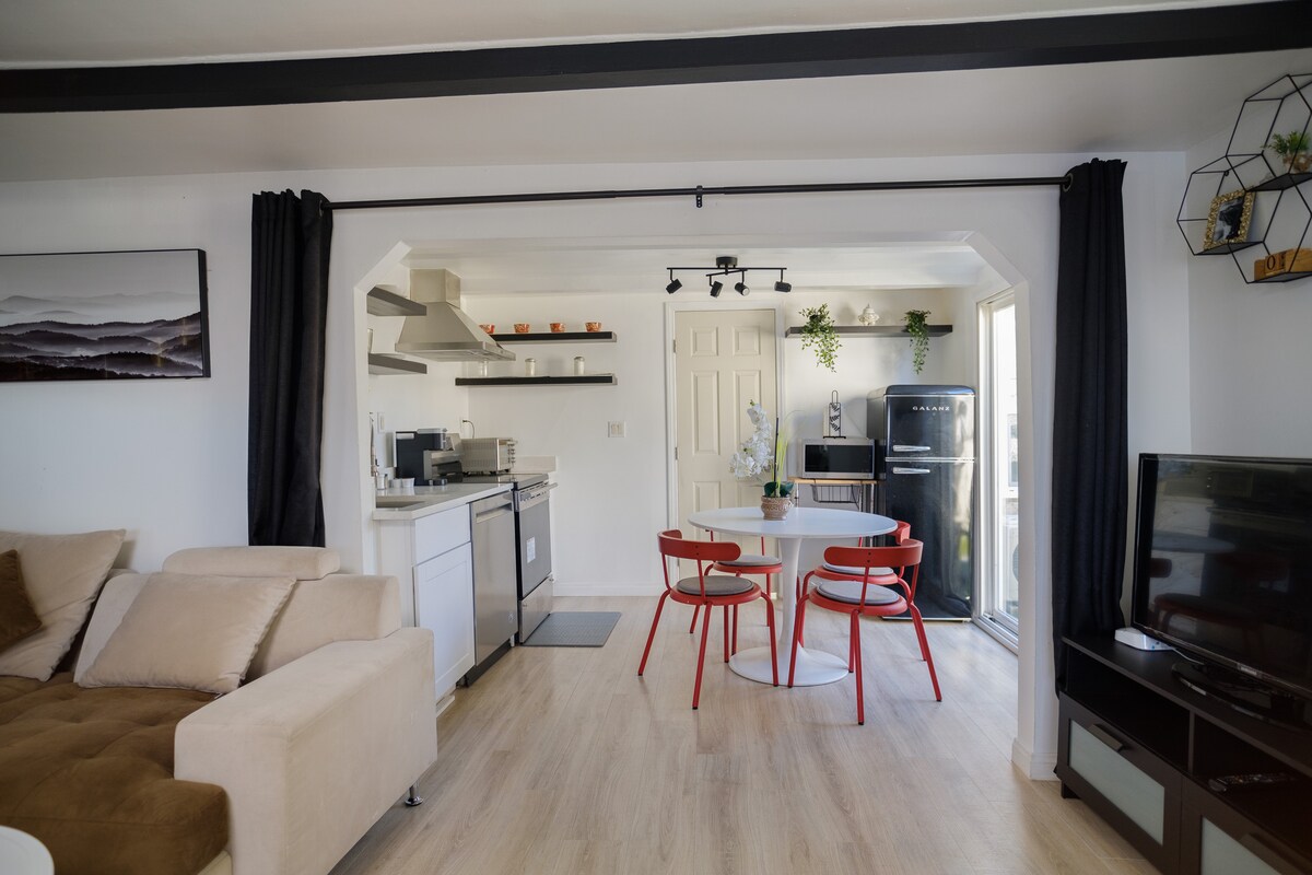 Rúllaðu ferðatöskunni inn og farðu úr skónum. Þetta friðsæla 1BR bóndabýli er afdrep þitt í hjarta San Gabriel-dalsins. Þú getur séð um þennan stað hvort sem þú ert að slaka á með kvikmynd, svara tölvupóstum við skrifborðið eða fara út í dim sum og versla á Atlantic Times Square. Með tveimur fullbúnum baðherbergjum, bónusrúmi og hröðu þráðlausu neti er fullkomið jafnvægi heimilislegt og hagnýtt. Bókaðu þér gistingu í dag!