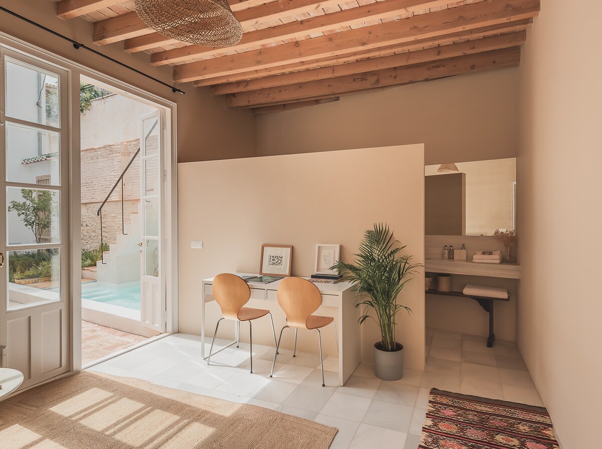 ThinkersINN, stable INTERNET, H/OFFICE, Double infinity POOL + Heated jacuzzi. A peaceful oasis invites you In the evening you can enjoy great Andalusian food, drinks, and music in the city center. There are 2 studios on the side of the Hacienda, the pool is private and belongs only to our house. The bedroom (bed 2m long), rainforest shower, AC, SmartTV, glassed terrace, kitchenette, Weber gas grill Our house is very quiet and private, just on the edge of the center, on Tarmac road/free parking.
