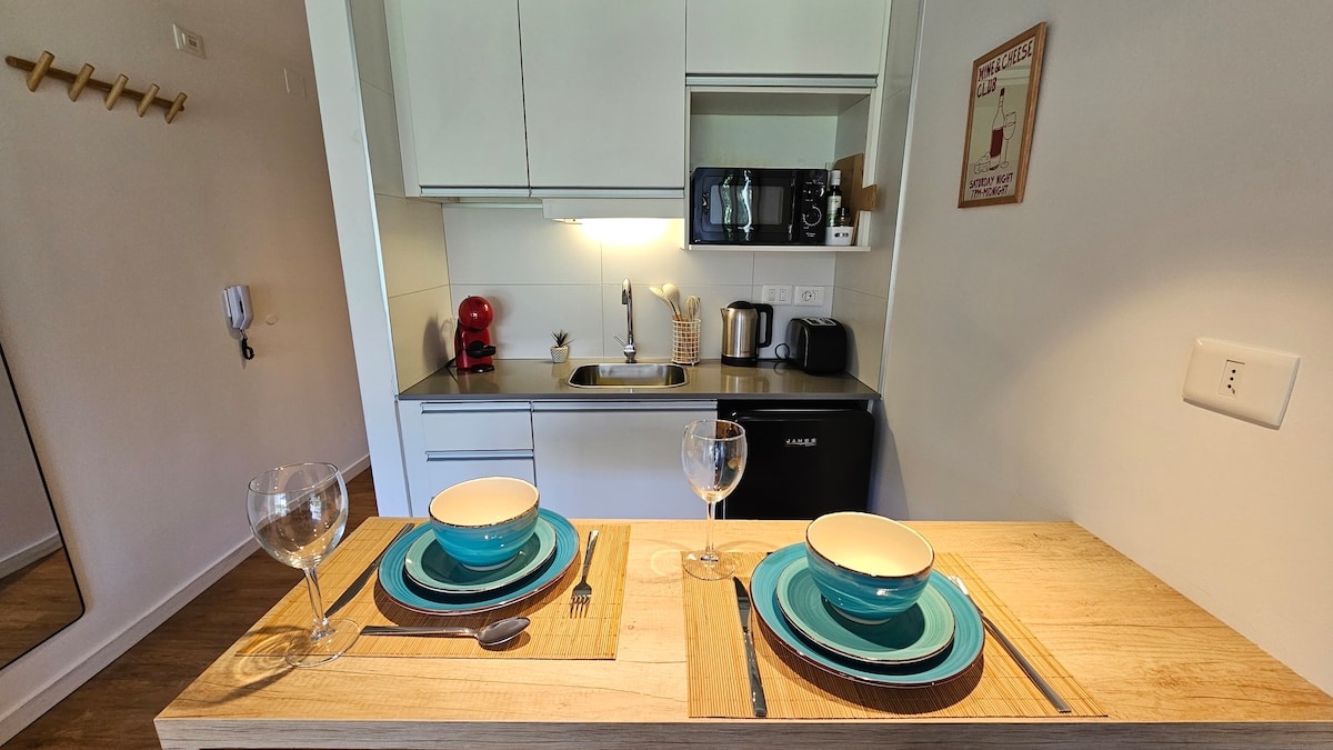 Þér þykir leitt að fara. Ég mæli með því að lesa athugasemdir gesta. Óaðfinnanlegt, bjart, hljóðlátt og fullbúið stúdíó. Það gefur þér tilfinningu um að vera sá fyrsti til að nota allt. Í byggingunni er þvottahús, líkamsræktarstöð og þak með sólbekkjum og borðum, aðeins fyrir gesti. Stórkostleg staðsetning: ein húsaröð frá ströndinni; nálægt alls konar verslunum, veitingastöðum og verslunarmiðstöð. Bílastæði við götuna.