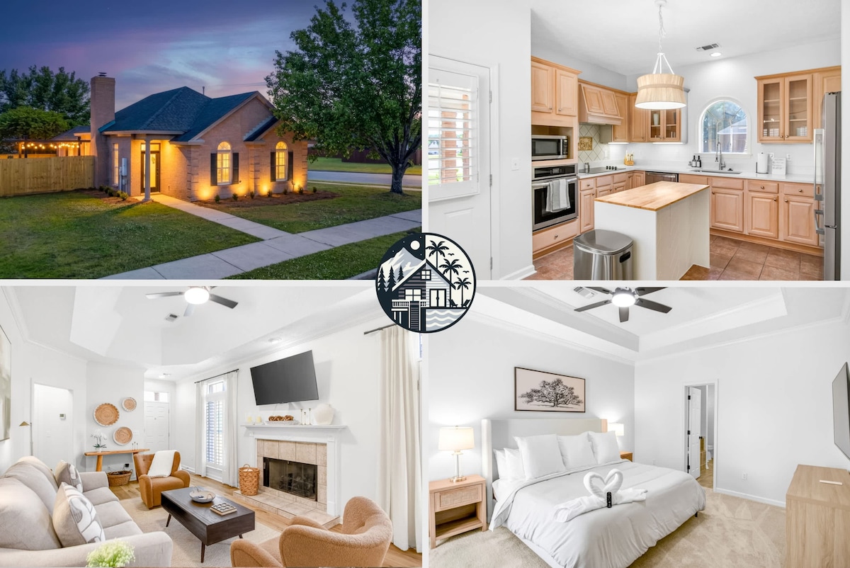 Welcome to this spacious 3-bed, 2-bath Halcyon home. - Sleeps up to 8 with a king suite, queen room, twin room, and queen sleeper sofa. - Bright living area with smart TV and desk space. - Fully equipped kitchen with dining table. - Patio with seating and fenced yard. - Child-friendly with step-free access. - Minutes from EastChase shops and downtown. - Explore nearby attractions like the Alabama State Capitol and Rosa Parks Museum. Relax in this spacious 3-bed, 2