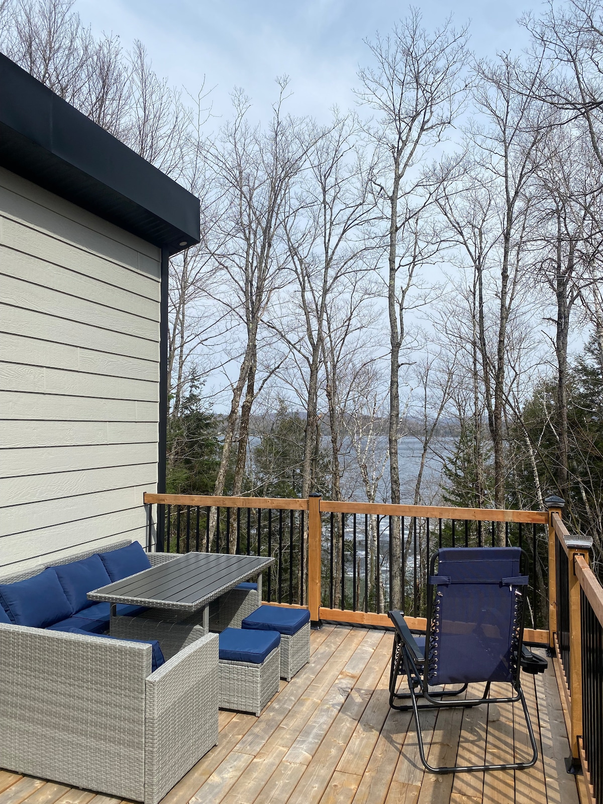 Slakaðu á og slakaðu á í þessum rólega, stílhreina 700 fermetra sem byggt var árið 2021 sem rúmar 4 manns. Víðáttumikið útsýni yfir vatnið frá þilfari og útiverönd notalegir stólar með útsýni yfir vatnið. Allt sem þú þarft til að láta þér líða eins og heima hjá þér. GST og PST eru innifalin í verði á nótt! Sjálfsinnritun með talnaborði. Afbókun án endurgjalds ef henni er lokið 5 dögum fyrir komudag. Skuldbundið sig til að auka hreinlæti.