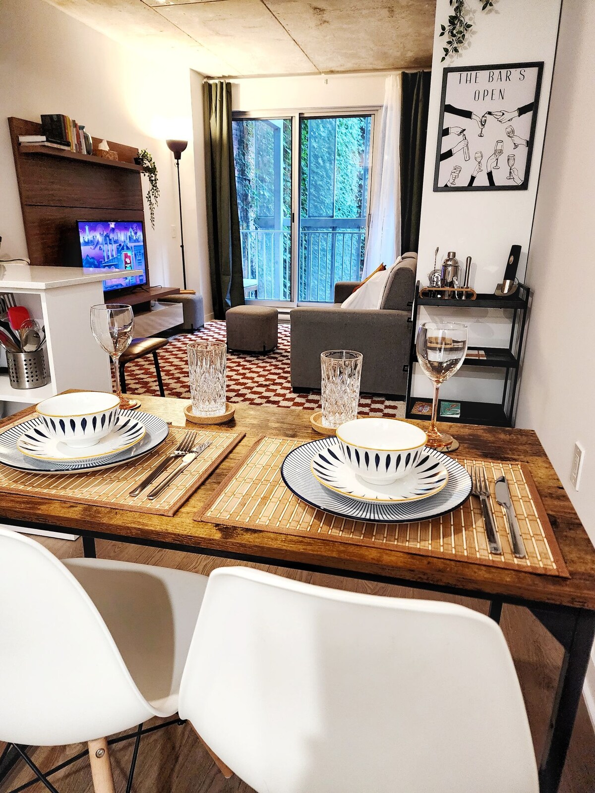 Situé en plein cœur du quartier des spectacles, cet élégant et cosy mini-loft tout équipé est le pied-à-terre idéal pour découvrir Montréal ainsi que pour les voyages d’affaires. À quelques minutes de la Place des arts et ses festivals d'été, des restaurants, cafés, magasins, théâtres, salles de spectacle de la rue Sainte-Catherine ou encore du boulevard Saint-Laurent et du quartier latin. Wifi haut débit, Netflix, Disney Channel. Accès gratuit à la gym et au co-working de l'immeuble.