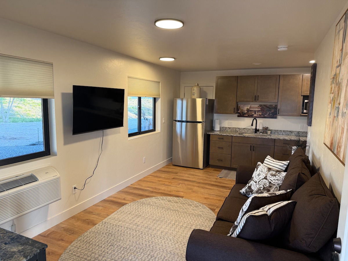 Experience the comforts of home in our spacious room. Featuring a fully private space with its own door separated from the main house. With a full bathroom and kitchenette, you’ll find everything you need for an extended visit. The park and hospital are only a short walk away, ensuring both leisure and convenience. This special place is close to everything, making it easy to plan your visit. 7 blocks from Main Street, near the water way and parks with secured private entrance.
