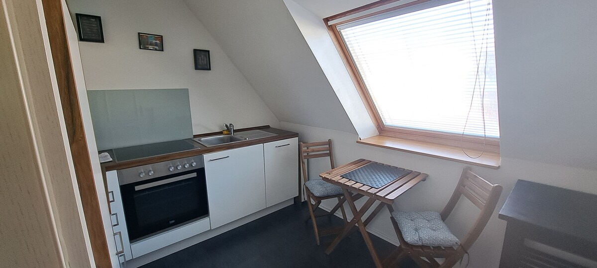 Við bjóðum upp á 3,5 herbergja íbúð í þægilegu andrúmslofti, sem hentar sem orlofs- eða viðskiptaíbúð (heimaskrifstofa). Stórt eldhús með beinum aðgangi að stofunni, baðherbergi og 3 svefnherbergi á um 100 fermetrum á 2 hæðum, nóg pláss fyrir allt að 5 gesti. Einnig er hægt að taka á móti 1 litlu barni. Svalir sem snúa í suður af. Nútímalegt og vel búið eldhús er í boði fyrir sjálfsafgreiðslu. Bílastæði fyrir framan dyrnar.